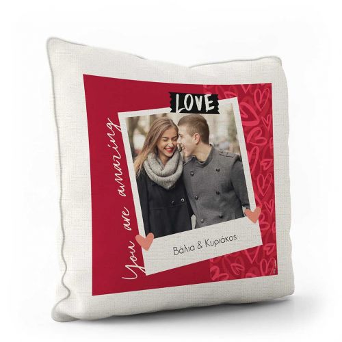 Φτιάξε πανεύκολα με 3D σχεδιασμό τα δικά σου μοναδικά μαξιλάρια ! Ανέβασε τις φωτογραφίες σου, πρόσθεσε κείμενα & αγαπημένες φράσεις. Σε λίγα δευτερόλεπτα θα έχεις δημιουργήσει το δικά σου μοναδικά μαξιλάρια!