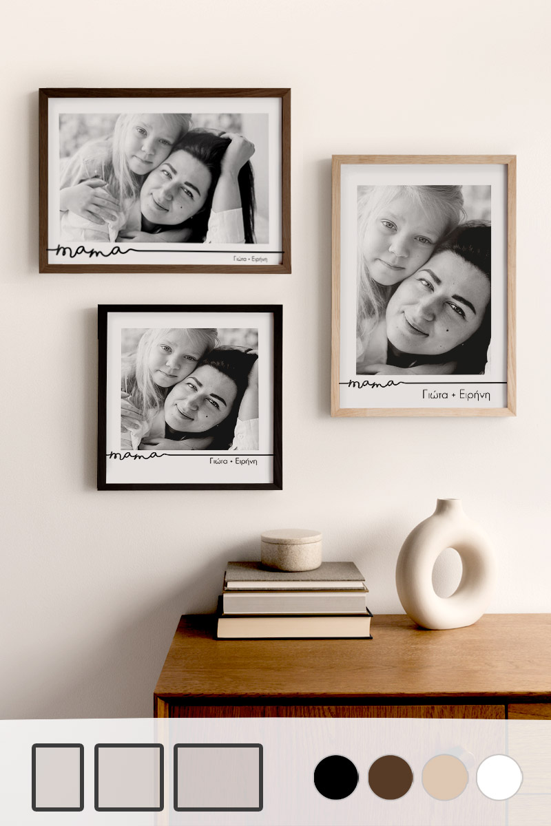 Κάνουμε πιο εύκολο από ποτέ τον τρόπο με τον οποίο μπορείτε να δημιουργήσετε online τα δικά σας έργα τέχνης. Προσθέστε στις κορνίζες σας μονογράμματα, κείμενα, λεζάντες και πολλά άλλα. Σε λίγα λεπτά, μπορείτε να παραγγείλετε ένα έργο τέχνης που θα μετατρέψει έναν συνηθισμένο τοίχο στο σημείο εστίασης οποιουδήποτε δωματίου. Μπορείτε να δημιουργήσετε κορνίζες με τις καθημερινές σας στιγμές, το Γάμο σας, τη Βάπτιση του παιδιού σας, τα ταξίδια σας, τις διακοπές σας, τις σημαντικές στιγμές σας και πολλά άλλα.