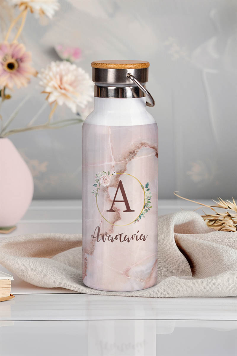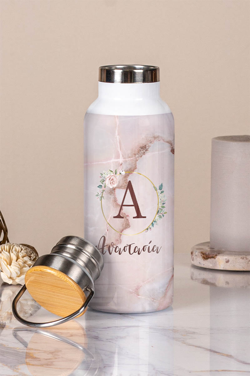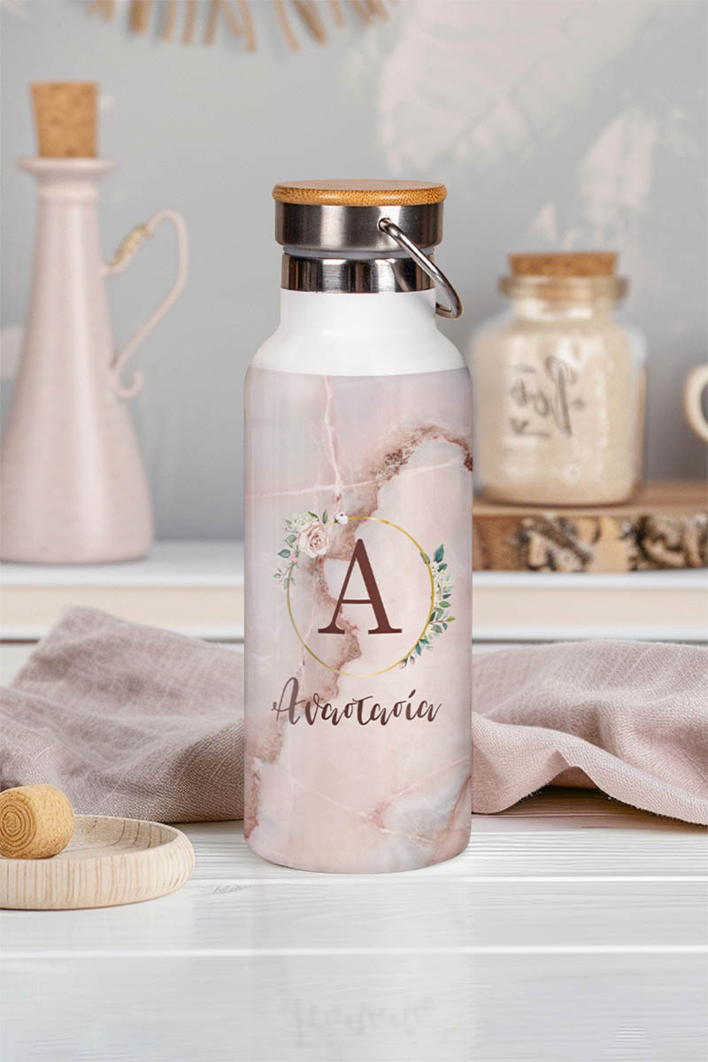 Μπουκάλι Θερμός, Ανοξείδωτo με Προσωποποίηση, Marble Flower