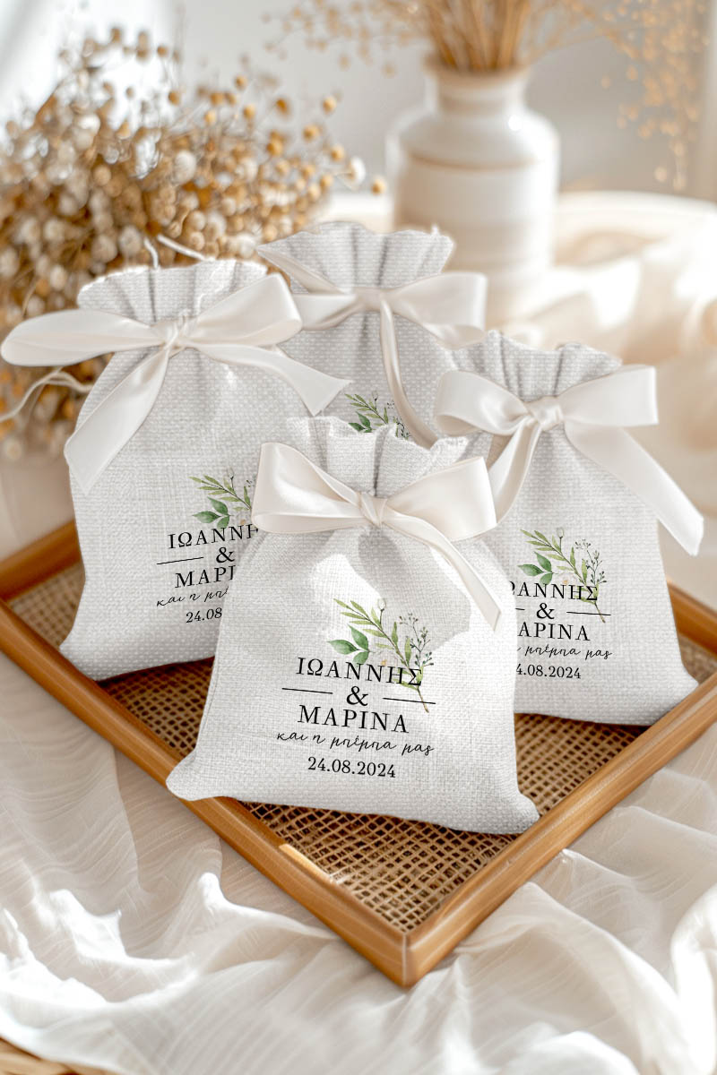 1.59€Μοντέρνες και Πρωτότυπες Μπομπονιέρες Γάμου και Βάπτισης με Πουγκί από Καμβά | Σετ Πουγκί, Εσωτερικό Τούλι & Κορδέλα Σατέν | Premium ποιότητα