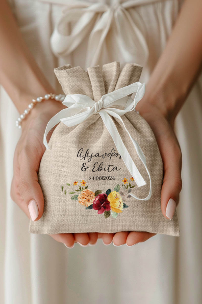 1.59€Μοντέρνες και Πρωτότυπες Μπομπονιέρες Γάμου και Βάπτισης με Πουγκί από Καμβά | Σετ Πουγκί, Εσωτερικό Τούλι & Κορδέλα Σατέν | Premium ποιότητα