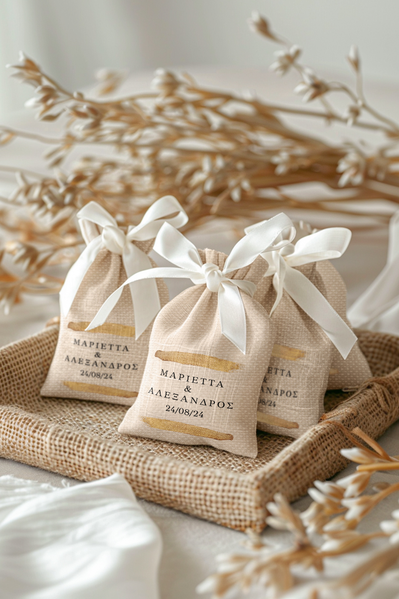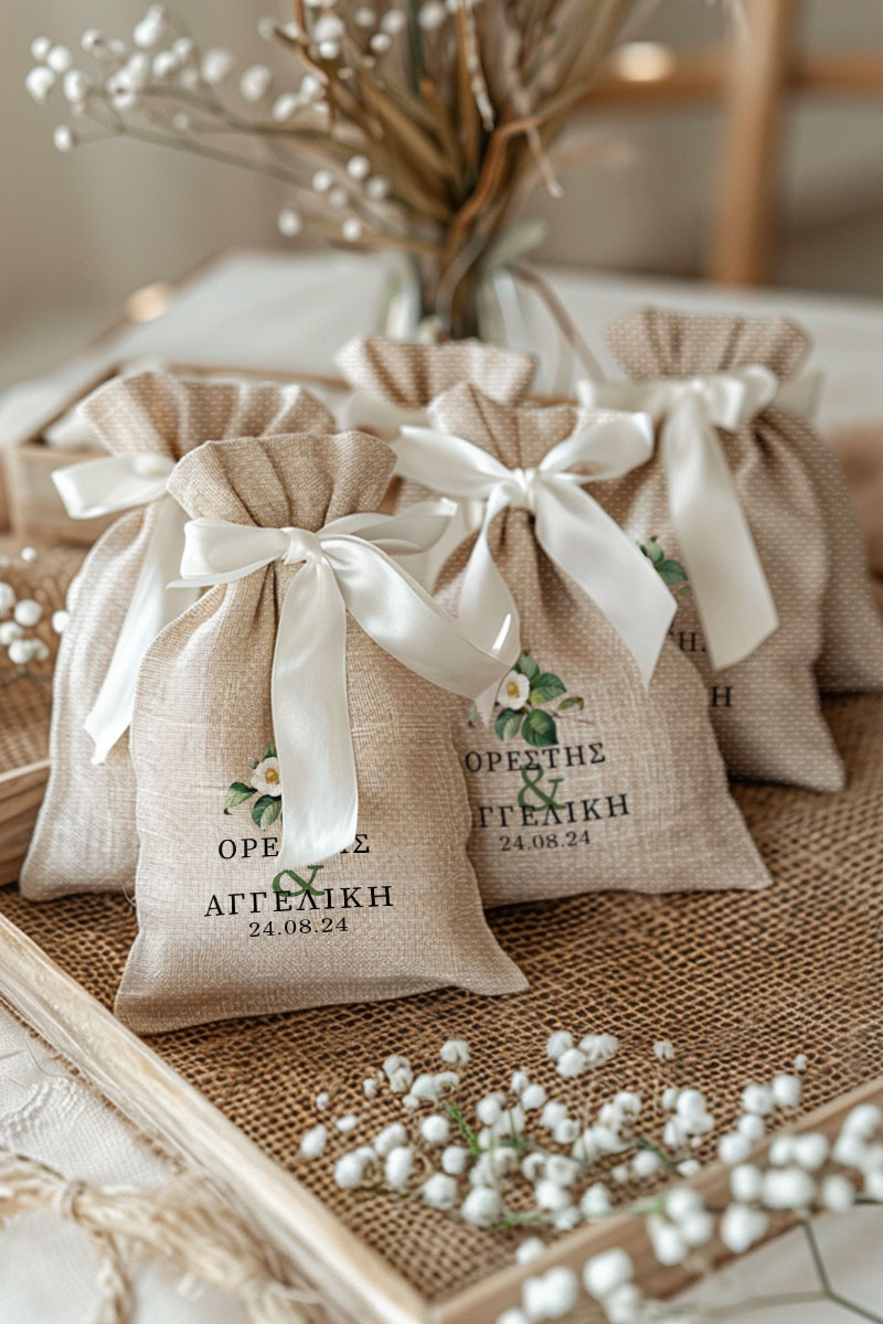 1.59€Μοντέρνες και Πρωτότυπες Μπομπονιέρες Γάμου και Βάπτισης με Πουγκί από Καμβά | Σετ Πουγκί, Εσωτερικό Τούλι & Κορδέλα Σατέν | Premium ποιότητα