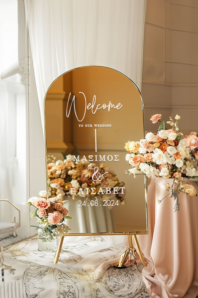 Η συλλογή μας περιλαμβάνει επιγραφές και ταμπέλες καλωσορίσματος γάμου κατασκευασμένες από ποιοτικά υλικά. Επιλέξτε υλικά όπως διάφανο plexiglass, plexiglass με χρυσό καθρέφτη και ξύλο. Κάθε προϊόν είναι προσεκτικά σχεδιασμένο για να αντανακλά το στυλ και την αισθητική του γάμου σας. Επίσης, κάθε επιγραφή μπορεί να προσαρμοστεί με τα ονόματα και την ημερομηνία του γάμου σας για μια ακόμη πιο προσωπική νότα.