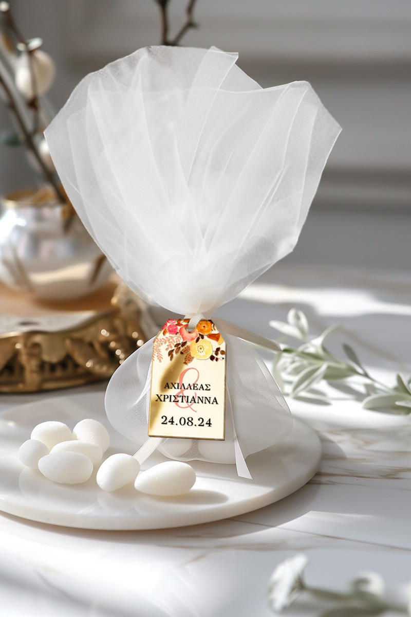 0.59€ – 1.49€Μοντέρνες & πρωτότυπες μπομπονιέρες Γάμου με τούλι & κρεμαστό σχέδιο| Σετ εξωτερικό τούλι, Εσωτερικό τούλι, Κορδέλα σατέν & Κρεμαστό σχέδιο σε premium χαρτί, ξύλο ή plexiglass | Premium ποιότητα