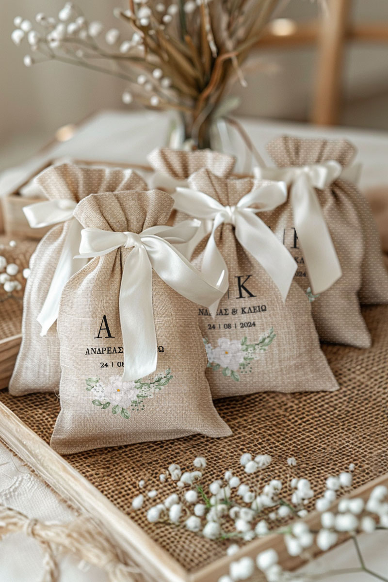 1.59€Μοντέρνες και Πρωτότυπες Μπομπονιέρες Γάμου με Πουγκί από Καμβά | Σετ Πουγκί, Εσωτερικό Τούλι & Κορδέλα Σατέν | Premium ποιότητα