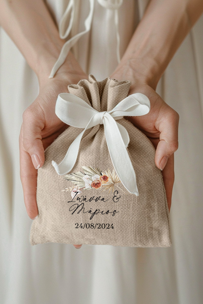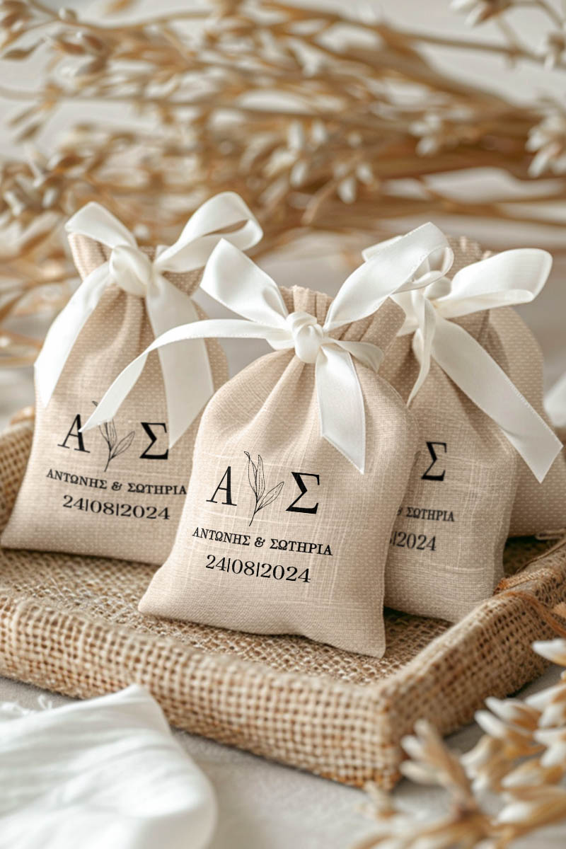 1.59€Μοντέρνες και Πρωτότυπες Μπομπονιέρες Γάμου με Πουγκί από Καμβά | Σετ Πουγκί, Εσωτερικό Τούλι & Κορδέλα Σατέν | Premium ποιότητα