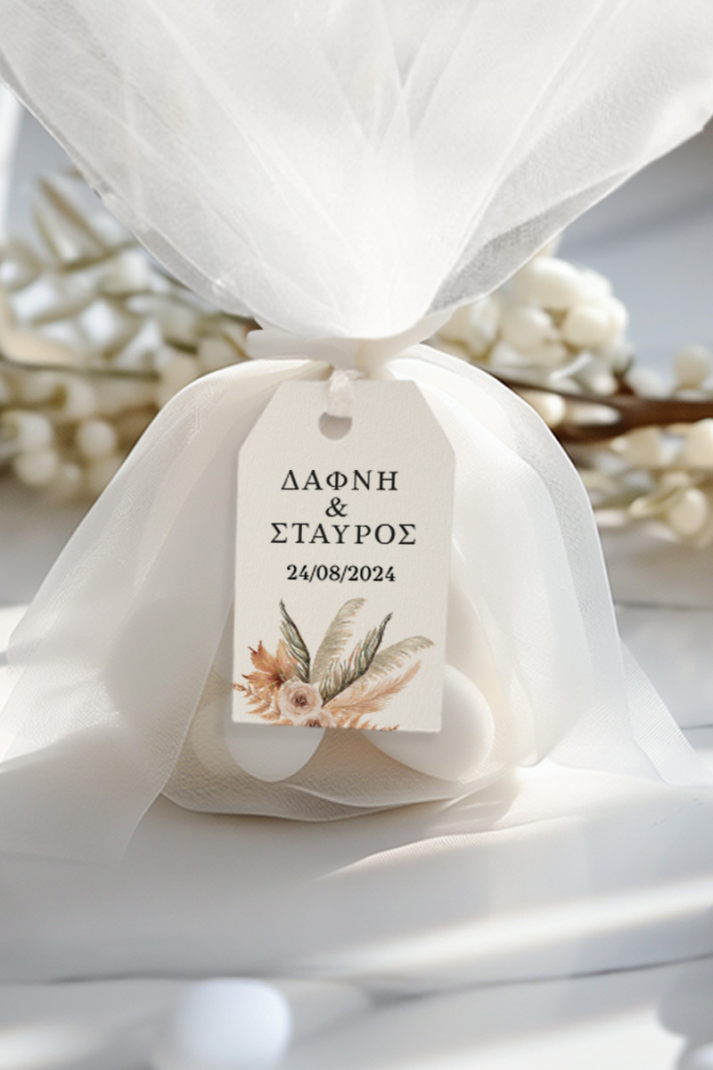 0.59€ – 1.49€Μοντέρνες & πρωτότυπες μπομπονιέρες Γάμου και Βάπτισης με τούλι & κρεμαστό σχέδιο | Σετ εξωτερικό τούλι, Εσωτερικό τούλι, Κορδέλα σατέν & Κρεμαστό σχέδιο σε premium χαρτί, ξύλο ή plexiglass | Premium ποιότητα
