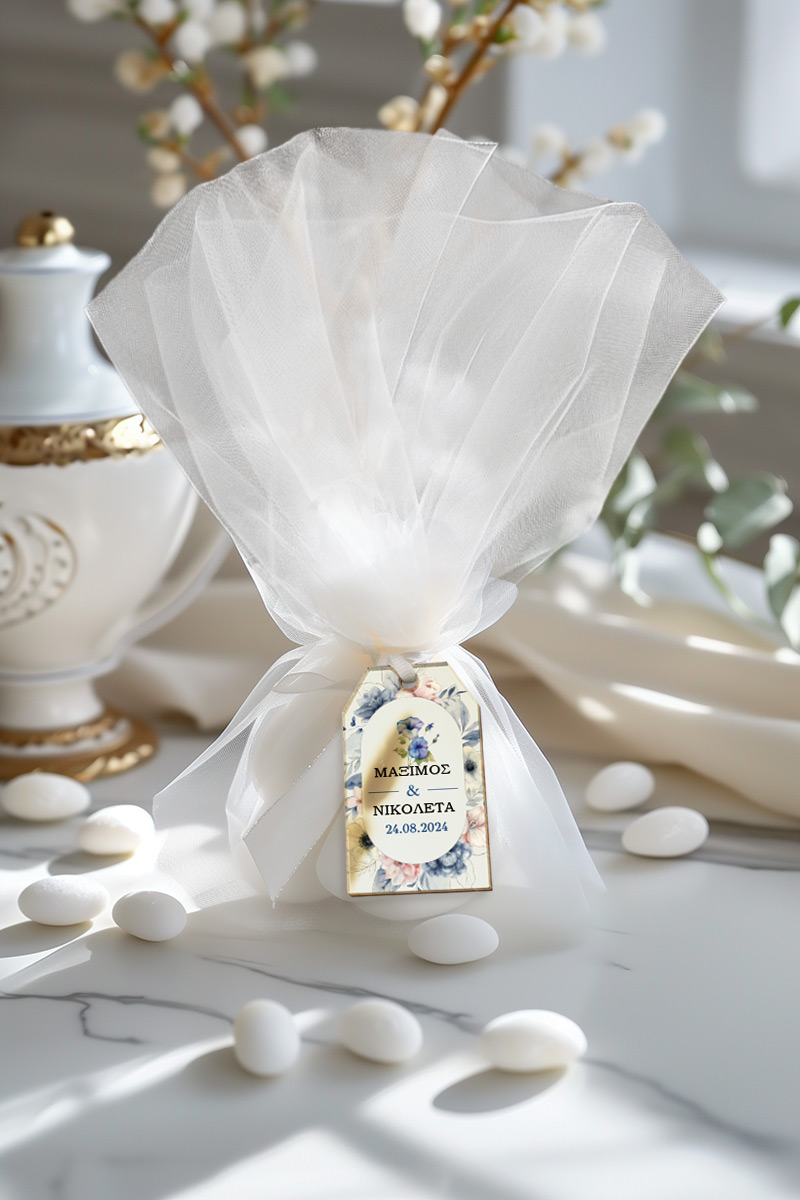 0.59€ – 1.49€Μοντέρνες & πρωτότυπες μπομπονιέρες Γάμου με τούλι & κρεμαστό σχέδιο| Σετ εξωτερικό τούλι, Εσωτερικό τούλι, Κορδέλα σατέν & Κρεμαστό σχέδιο σε premium χαρτί, ξύλο ή plexiglass | Premium ποιότητα