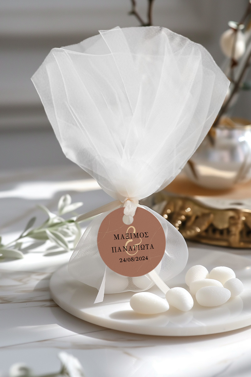 0.59€ – 1.49€Μοντέρνες & πρωτότυπες μπομπονιέρες Γάμου και Βάπτισης με τούλι & κρεμαστό σχέδιο | Σετ εξωτερικό τούλι, Εσωτερικό τούλι, Κορδέλα σατέν & Κρεμαστό σχέδιο σε premium χαρτί, ξύλο ή plexiglass | Premium ποιότητα