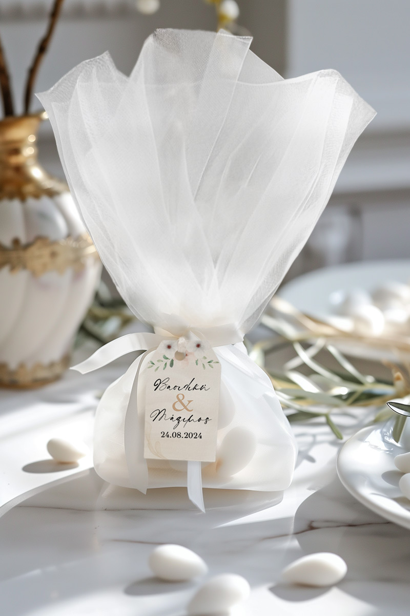 0.59€ – 1.49€Μοντέρνες & πρωτότυπες μπομπονιέρες Γάμου με τούλι & κρεμαστό σχέδιο| Σετ εξωτερικό τούλι, Εσωτερικό τούλι, Κορδέλα σατέν & Κρεμαστό σχέδιο σε premium χαρτί, ξύλο ή plexiglass | Premium ποιότητα