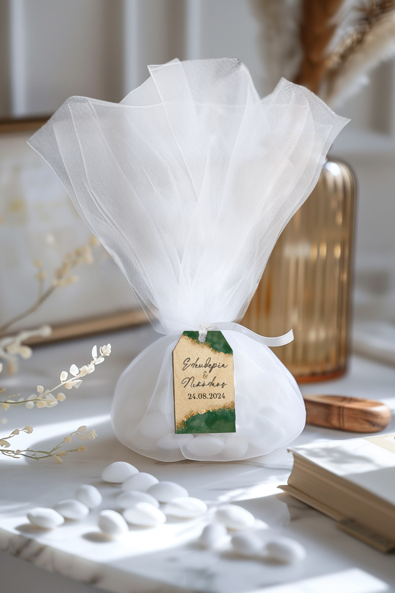 0.59€ – 1.49€Μοντέρνες & πρωτότυπες μπομπονιέρες Γάμου με τούλι & κρεμαστό σχέδιο| Σετ εξωτερικό τούλι, Εσωτερικό τούλι, Κορδέλα σατέν & Κρεμαστό σχέδιο σε premium χαρτί, ξύλο ή plexiglass | Premium ποιότητα