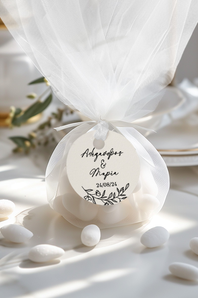 0.59€ – 1.49€Μοντέρνες & πρωτότυπες μπομπονιέρες Γάμου και Βάπτισης με τούλι & κρεμαστό σχέδιο | Σετ εξωτερικό τούλι, Εσωτερικό τούλι, Κορδέλα σατέν & Κρεμαστό σχέδιο σε premium χαρτί, ξύλο ή plexiglass | Premium ποιότητα
