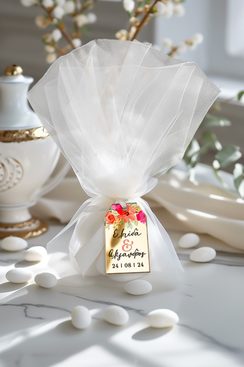 0.59€ – 1.49€Μοντέρνες & πρωτότυπες μπομπονιέρες Γάμου με τούλι & κρεμαστό σχέδιο| Σετ εξωτερικό τούλι, Εσωτερικό τούλι, Κορδέλα σατέν & Κρεμαστό σχέδιο σε premium χαρτί, ξύλο ή plexiglass | Premium ποιότητα