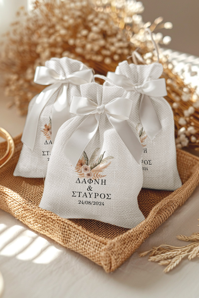 1.59€Μοντέρνες και Πρωτότυπες Μπομπονιέρες Γάμου με Πουγκί από Καμβά | Σετ Πουγκί, Εσωτερικό Τούλι & Κορδέλα Σατέν | Premium ποιότητα