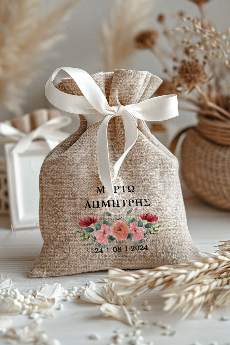 1.59€Μοντέρνες και Πρωτότυπες Μπομπονιέρες Γάμου με Πουγκί από Καμβά | Σετ Πουγκί, Εσωτερικό Τούλι & Κορδέλα Σατέν | Premium ποιότητα