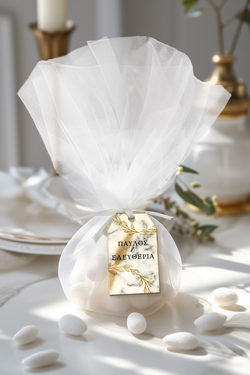 0.59€ – 1.49€Μοντέρνες & πρωτότυπες μπομπονιέρες Γάμου με τούλι & κρεμαστό σχέδιο| Σετ εξωτερικό τούλι, Εσωτερικό τούλι, Κορδέλα σατέν & Κρεμαστό σχέδιο σε premium χαρτί, ξύλο ή plexiglass | Premium ποιότητα