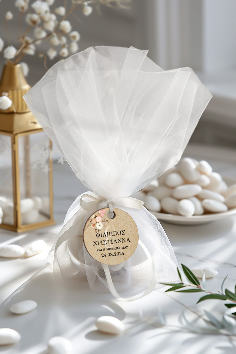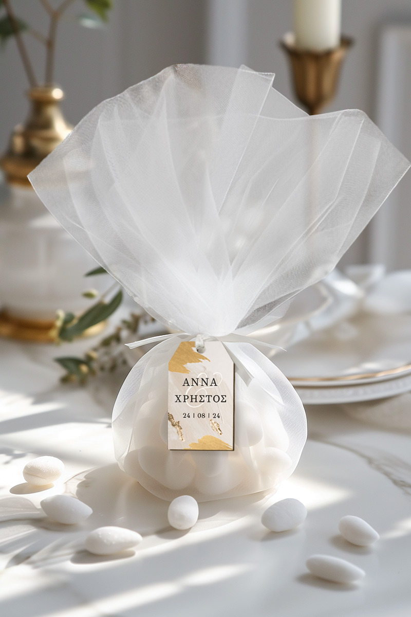 0.59€ – 1.49€Μοντέρνες & πρωτότυπες μπομπονιέρες Γάμου με τούλι & κρεμαστό σχέδιο| Σετ εξωτερικό τούλι, Εσωτερικό τούλι, Κορδέλα σατέν & Κρεμαστό σχέδιο σε premium χαρτί, ξύλο ή plexiglass | Premium ποιότητα