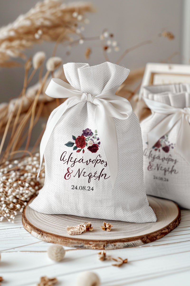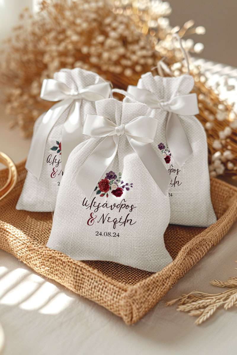 1.59€Μοντέρνες και Πρωτότυπες Μπομπονιέρες Γάμου και Βάπτισης με Πουγκί από Καμβά | Σετ Πουγκί, Εσωτερικό Τούλι & Κορδέλα Σατέν | Premium ποιότητα