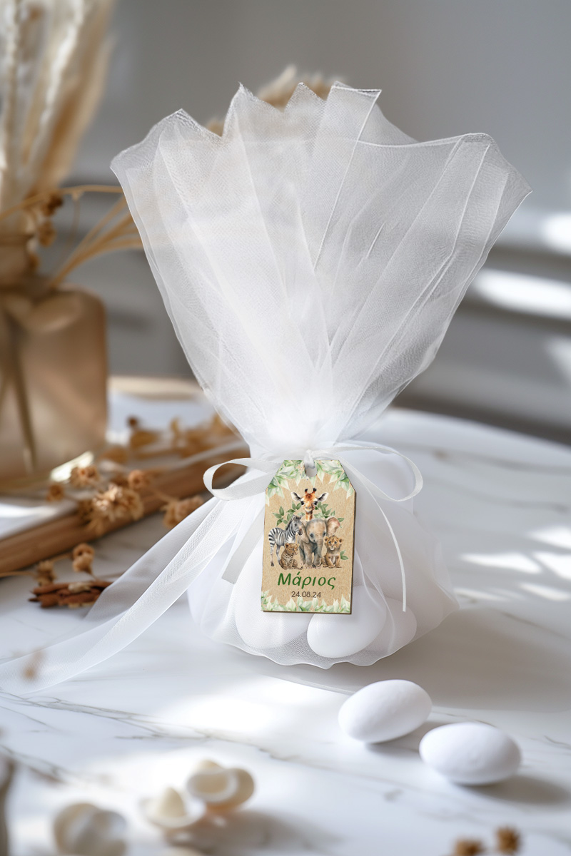 0.59€ – 1.49€Μοντέρνες & πρωτότυπες μπομπονιέρες βάπτισης με τούλι & κρεμαστό σχέδιο | Σετ εξωτερικό τούλι, Εσωτερικό τούλι, Κορδέλα σατέν & Κρεμαστό σχέδιο σε premium χαρτί, ξύλο ή plexiglass | Premium ποιότητα