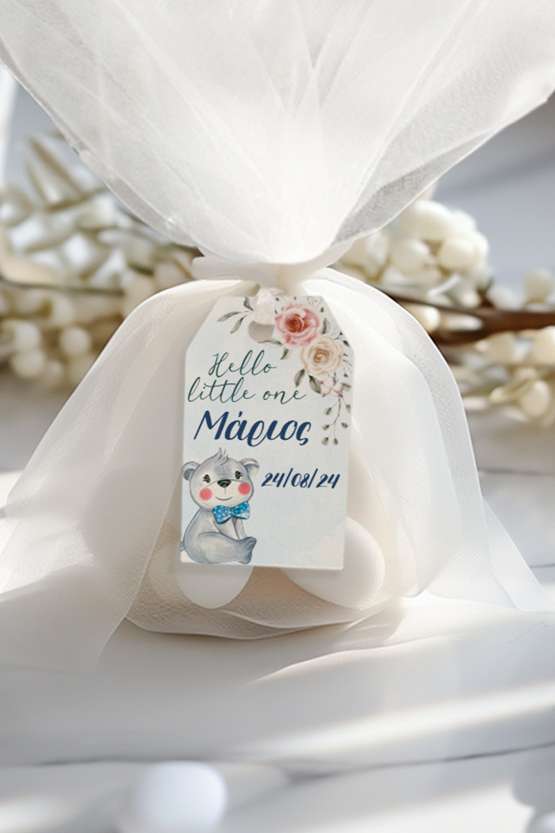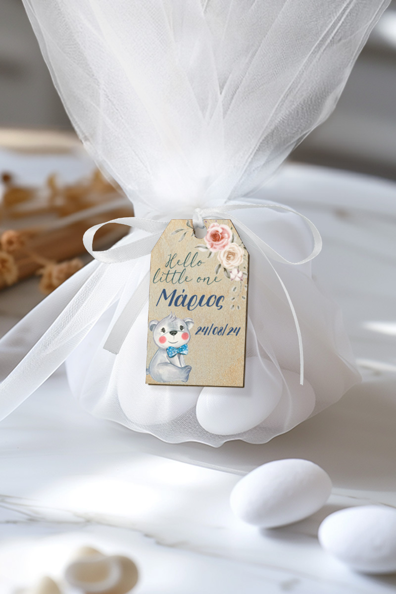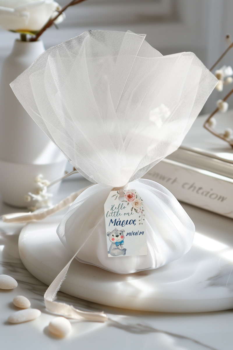 0.59€ – 1.49€Μοντέρνες & πρωτότυπες μπομπονιέρες βάπτισης με τούλι & κρεμαστό σχέδιο| Σετ εξωτερικό τούλι, Εσωτερικό τούλι, Κορδέλα σατέν & Κρεμαστό σχέδιο σε premium χαρτί, ξύλο ή plexiglass | Premium ποιότητα
