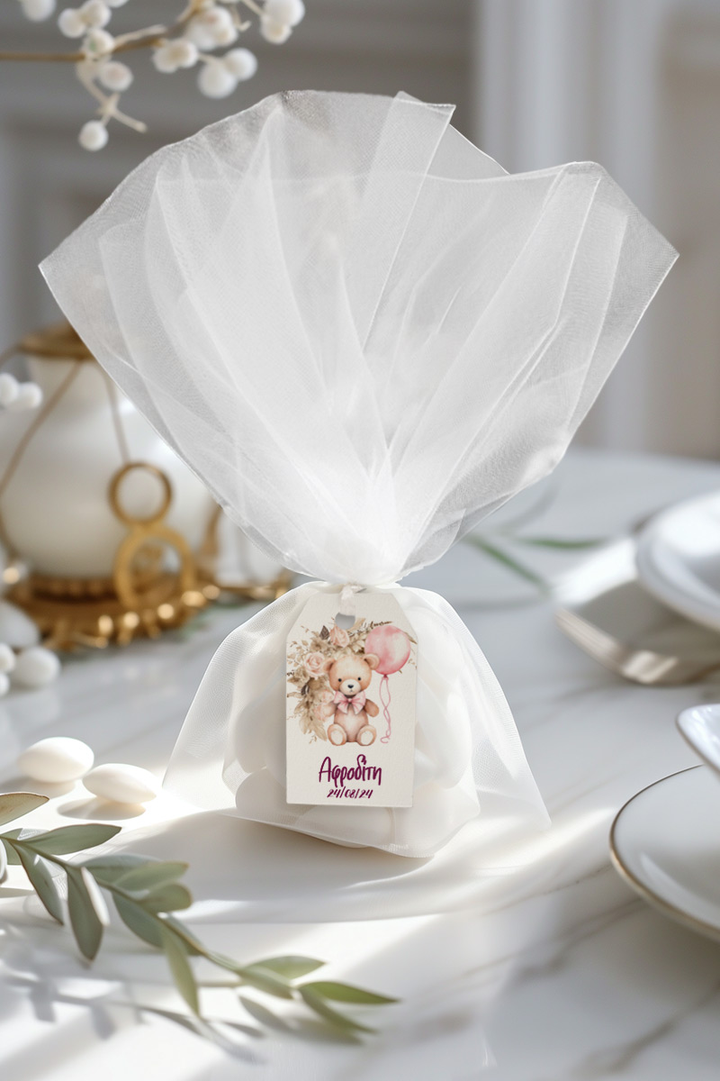 0.59€ – 1.49€Μοντέρνες & πρωτότυπες μπομπονιέρες βάπτισης με τούλι & κρεμαστό σχέδιο | Σετ εξωτερικό τούλι, Εσωτερικό τούλι, Κορδέλα σατέν & Κρεμαστό σχέδιο σε premium χαρτί, ξύλο ή plexiglass | Premium ποιότητα