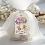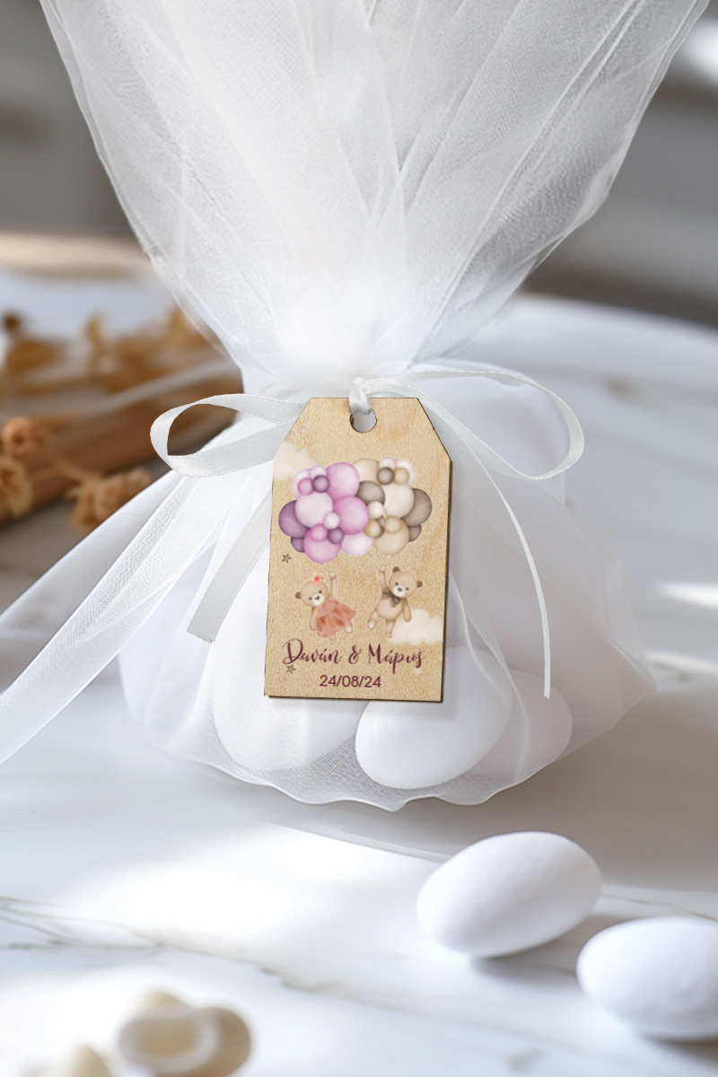 Μπομπονιέρες Βάπτισης με Τούλι & Σχέδιο Δίδυμα Αρκουδάκια Μπαλόνια