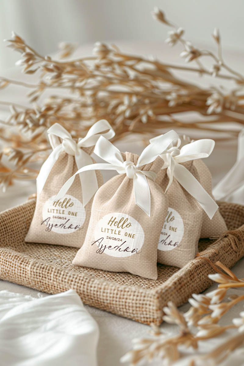 1.59€Μοντέρνες και Πρωτότυπες Μπομπονιέρες Βάπτισης με Πουγκί από Καμβά | Σετ Πουγκί, Εσωτερικό Τούλι & Κορδέλα Σατέν | Premium ποιότητα