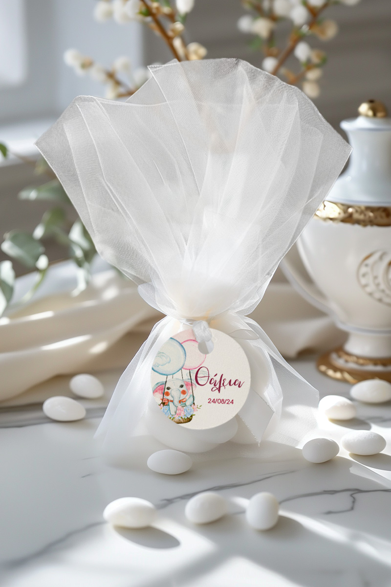 0.59€ – 1.49€Μοντέρνες & πρωτότυπες μπομπονιέρες βάπτισης με τούλι & κρεμαστό σχέδιο| Σετ εξωτερικό τούλι, Εσωτερικό τούλι, Κορδέλα σατέν & Κρεμαστό σχέδιο σε premium χαρτί, ξύλο ή plexiglass | Premium ποιότητα