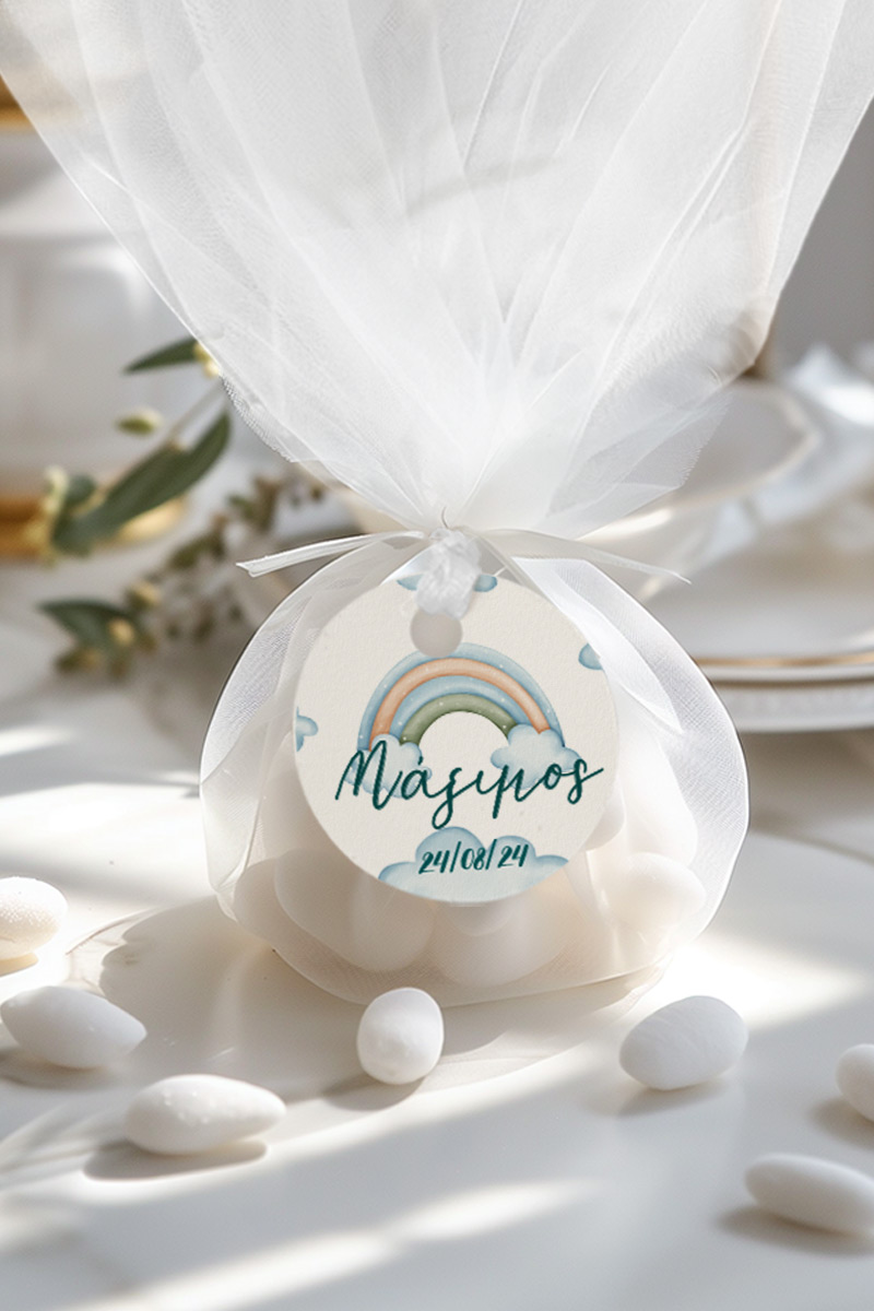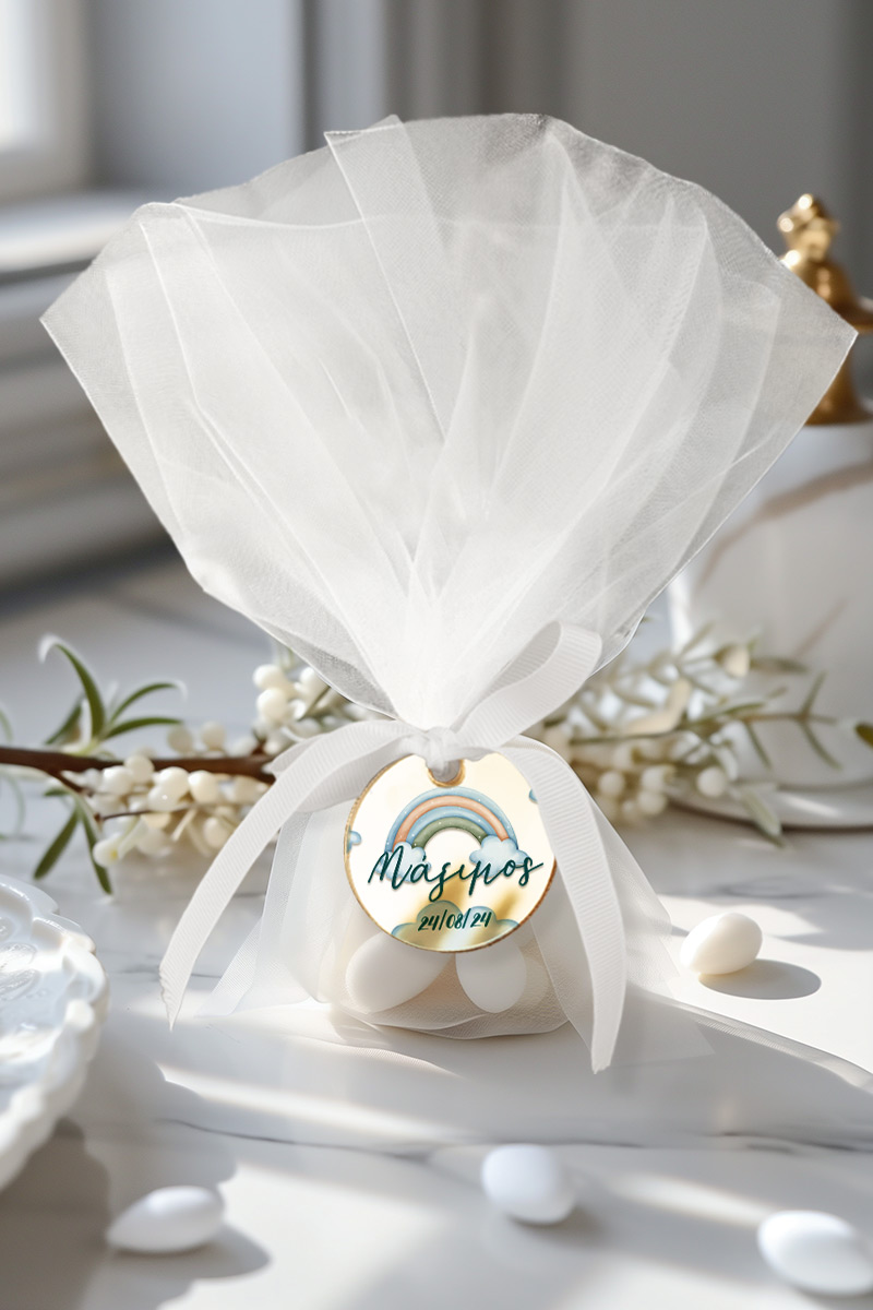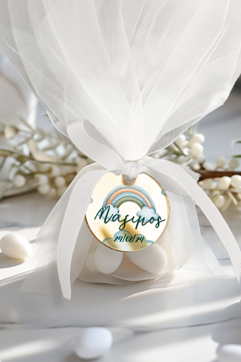 Μπομπονιέρες Βάπτισης με Τούλι & Σχέδιο Γαλάζιο Ουράνιο Τόξο