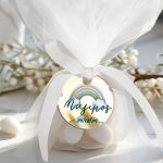 • 1 προσωποποιημένο κρεμαστό (φ) 5.5cm, από σκληρό premium χαρτί, ξύλο ή χρυσό καθρέφτη plexiglass