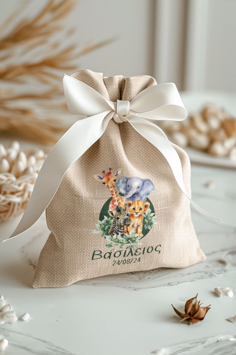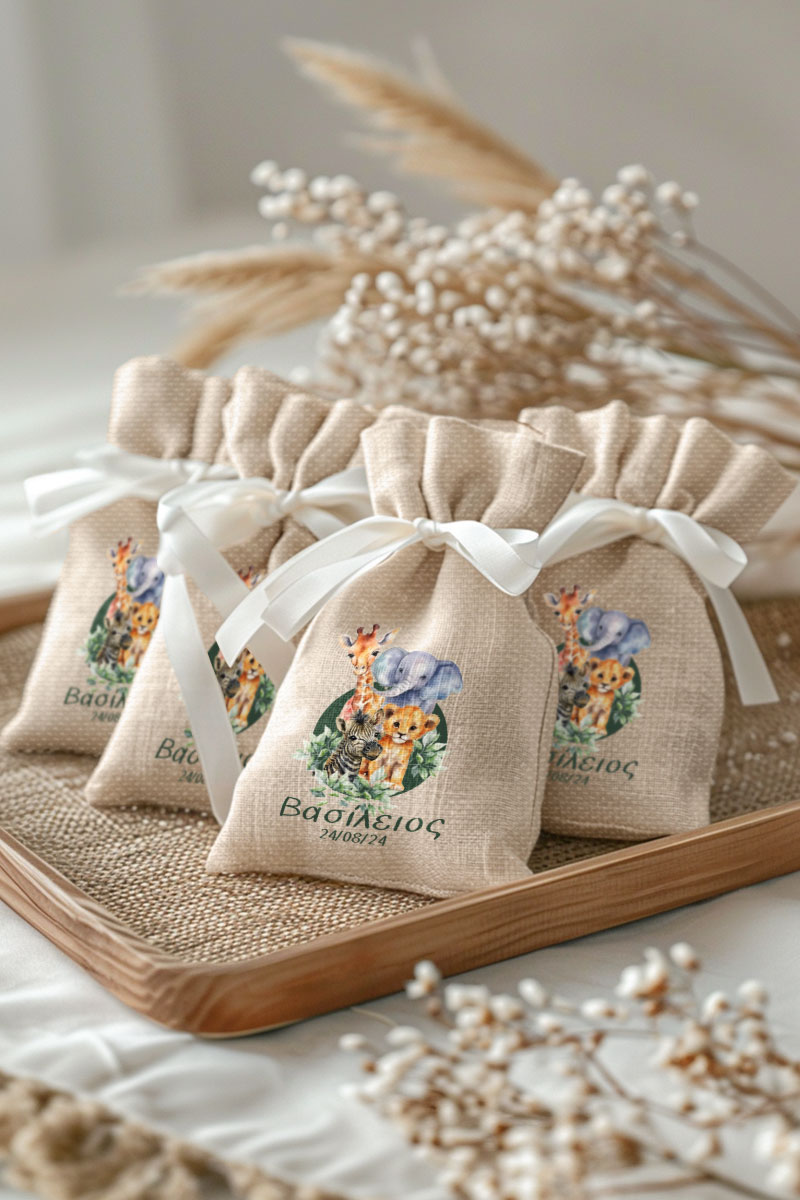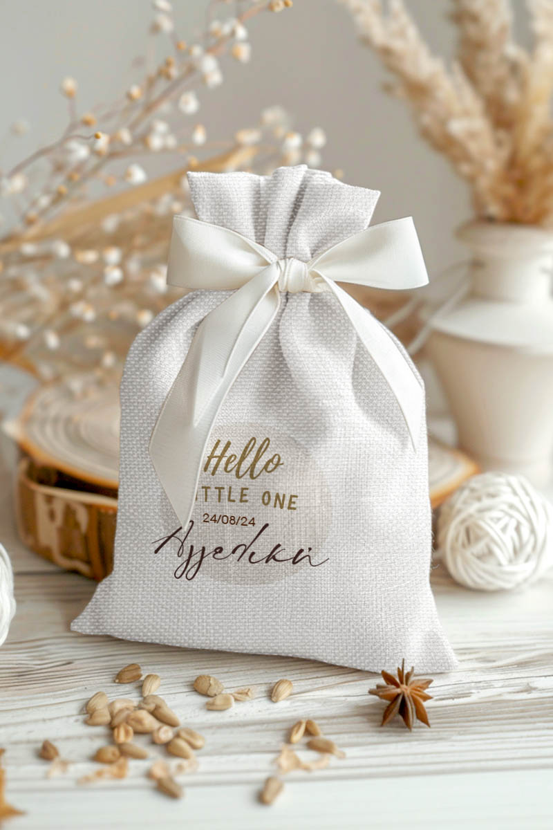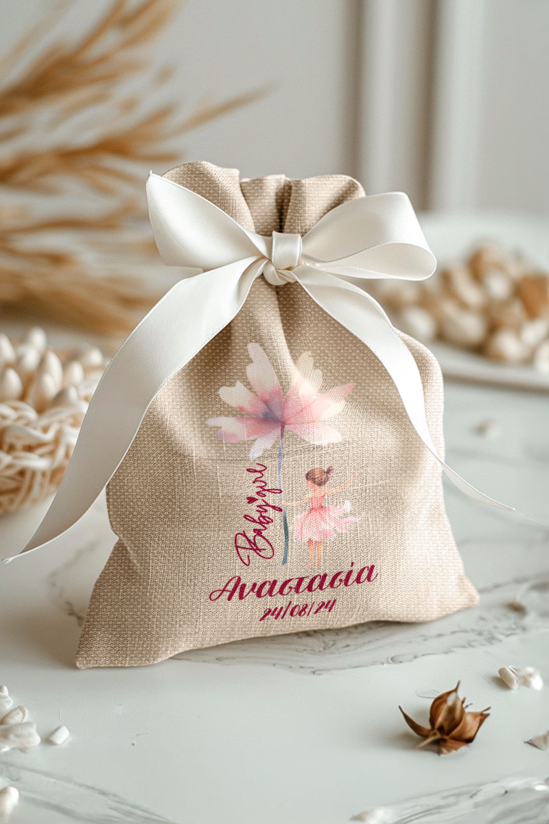 1.59€Μοντέρνες και Πρωτότυπες Μπομπονιέρες Βάπτισης με Πουγκί από Καμβά | Σετ Πουγκί, Εσωτερικό Τούλι & Κορδέλα Σατέν | Premium ποιότητα