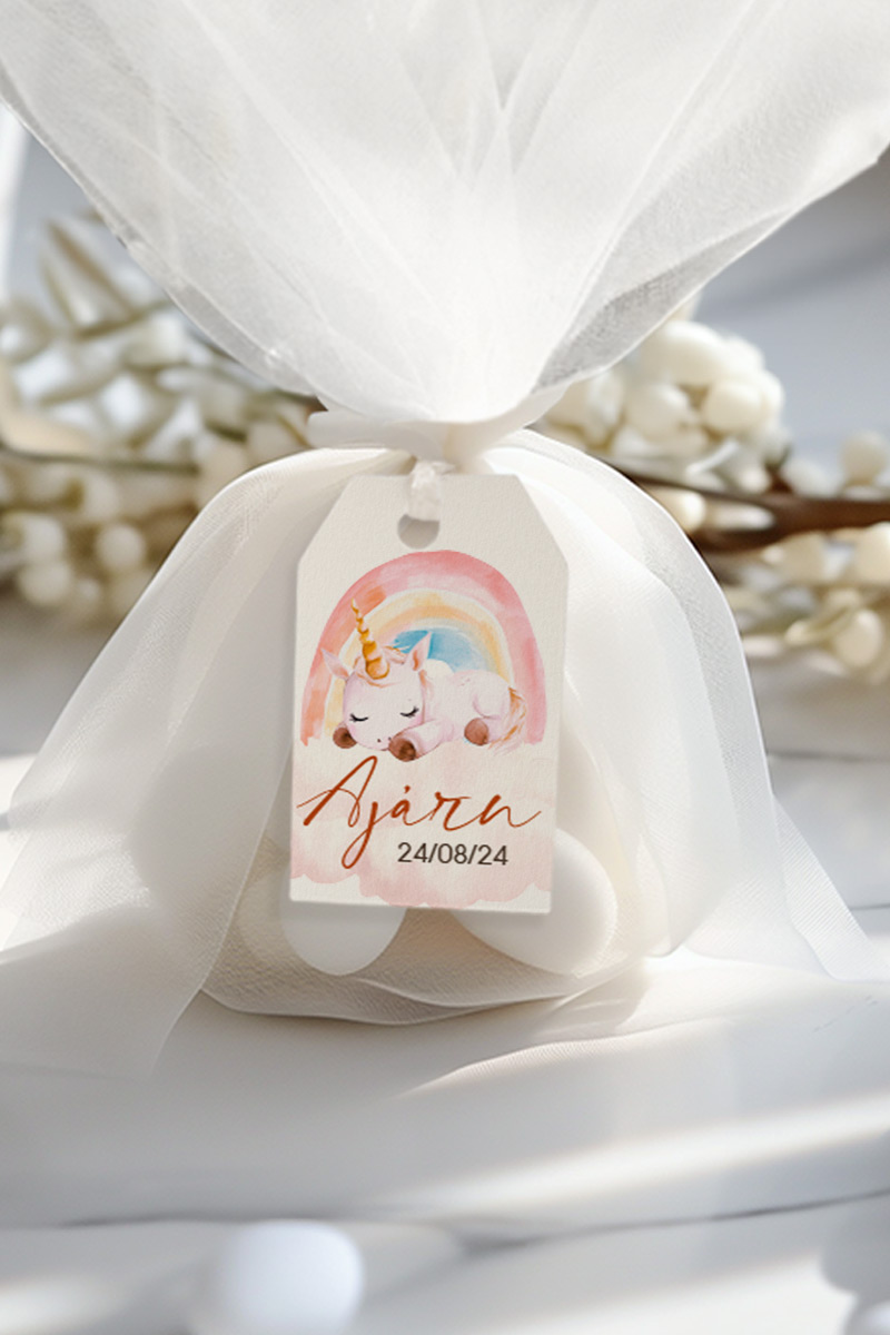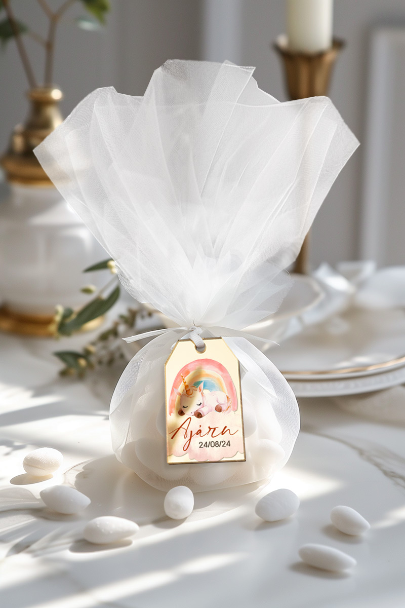 Μπομπονιέρες Βάπτισης με Τούλι & Σχέδιο Μικρός Μονόκερος
