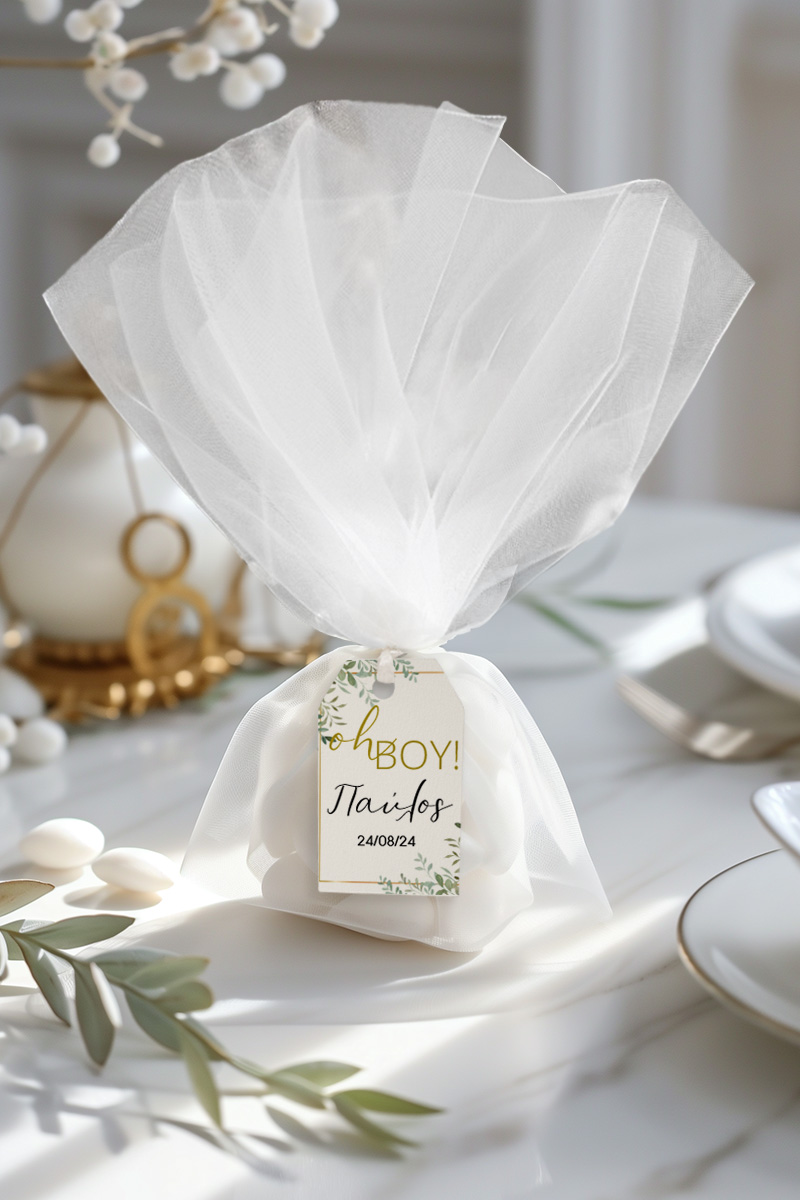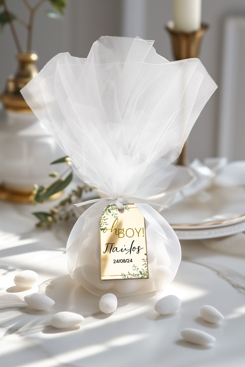 0.59€ – 1.49€Μοντέρνες & πρωτότυπες μπομπονιέρες βάπτισης με τούλι & κρεμαστό σχέδιο | Σετ εξωτερικό τούλι, Εσωτερικό τούλι, Κορδέλα σατέν & Κρεμαστό σχέδιο σε premium χαρτί, ξύλο ή plexiglass | Premium ποιότητα