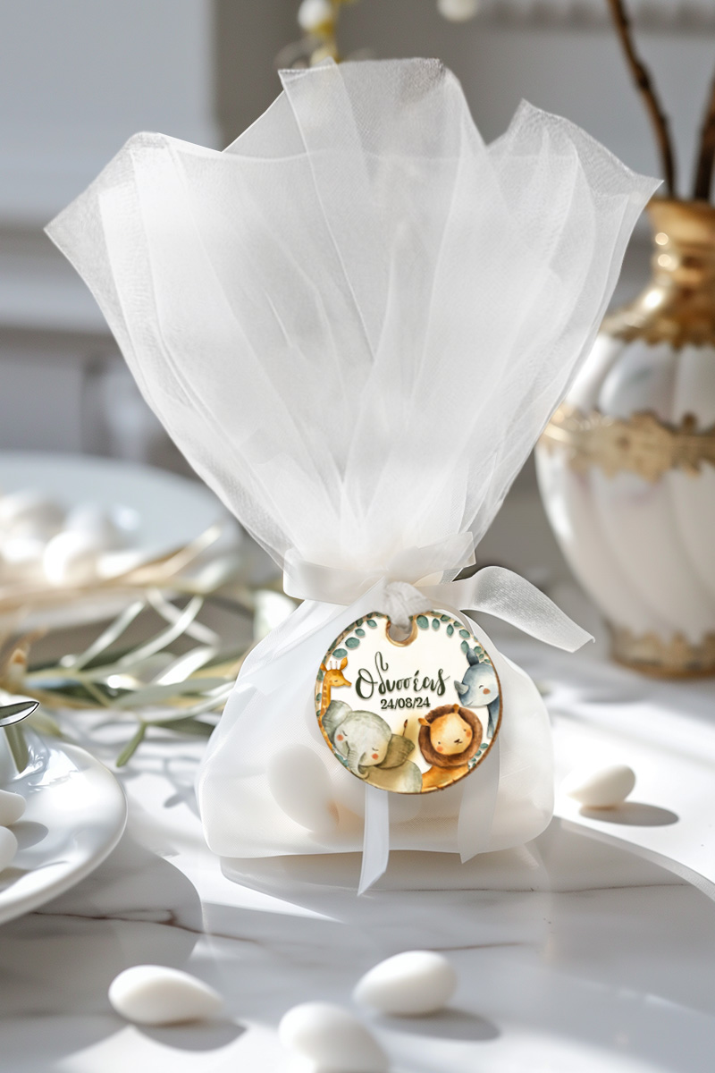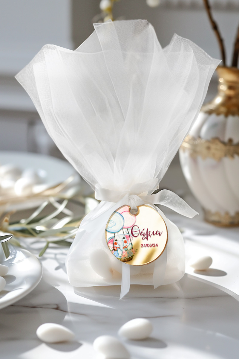 0.59€ – 1.49€Μοντέρνες & πρωτότυπες μπομπονιέρες βάπτισης με τούλι & κρεμαστό σχέδιο| Σετ εξωτερικό τούλι, Εσωτερικό τούλι, Κορδέλα σατέν & Κρεμαστό σχέδιο σε premium χαρτί, ξύλο ή plexiglass | Premium ποιότητα
