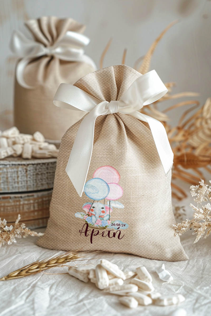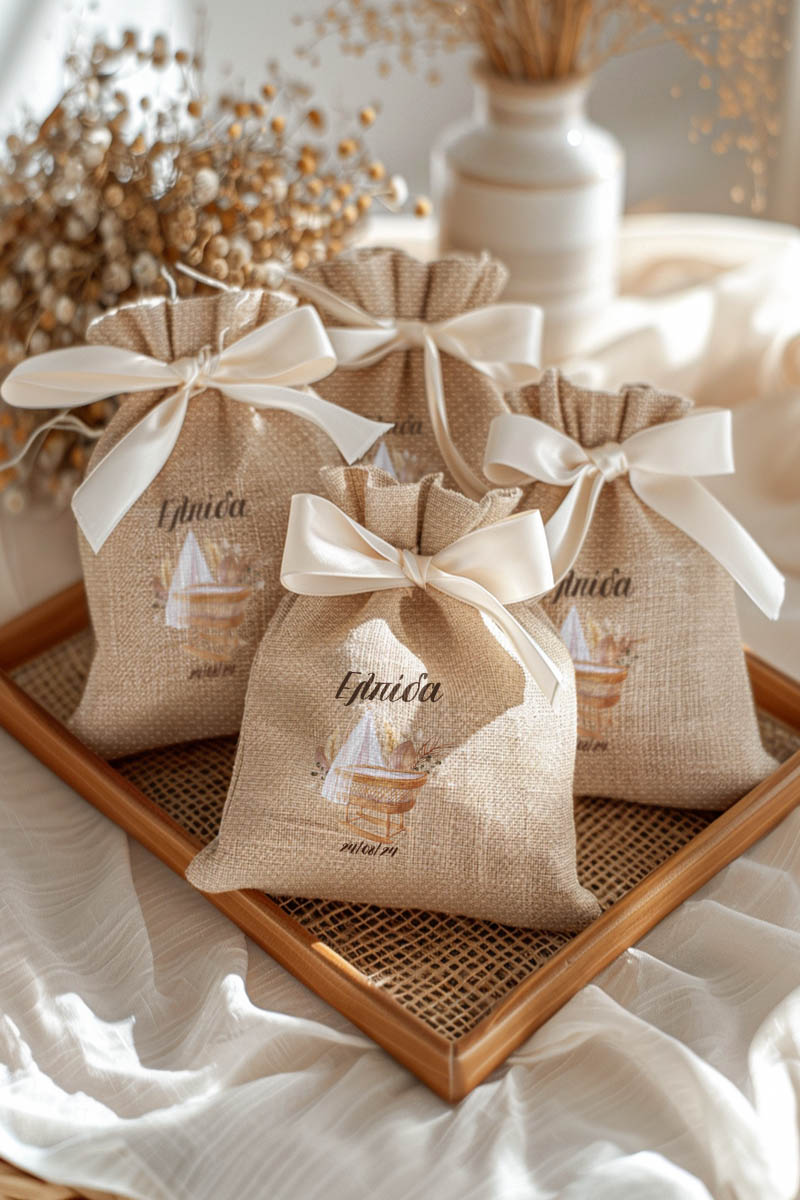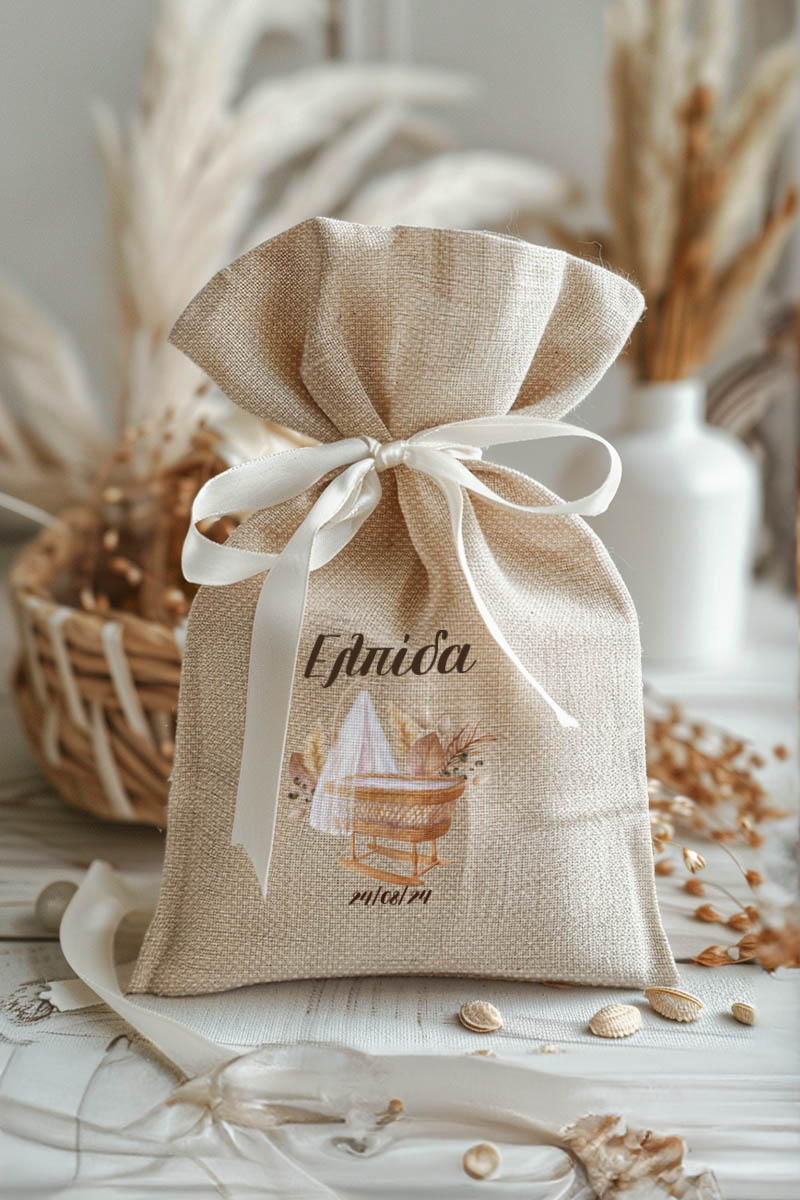 1.59€Μοντέρνες και Πρωτότυπες Μπομπονιέρες Βάπτισης με Πουγκί από Καμβά | Σετ Πουγκί, Εσωτερικό Τούλι & Κορδέλα Σατέν | Premium ποιότητα