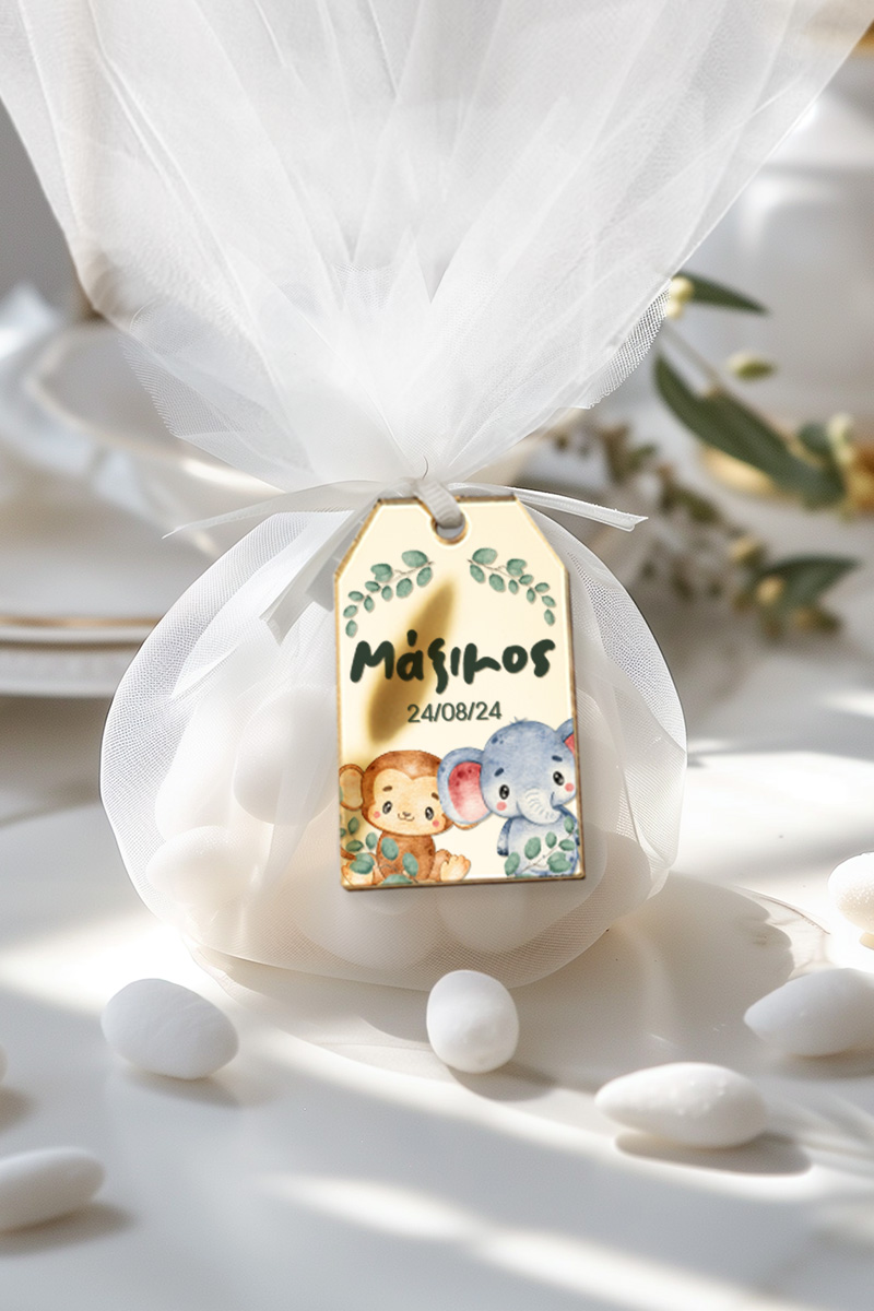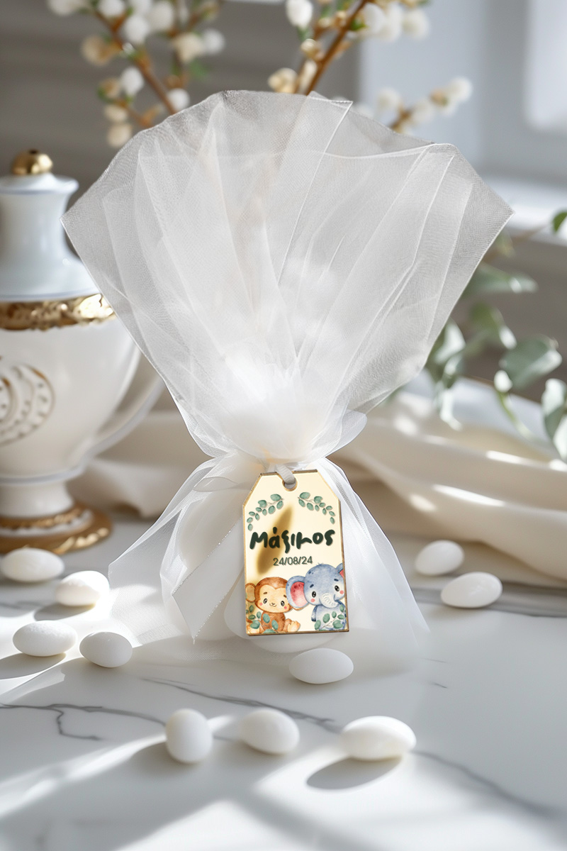 0.59€ – 1.49€Μοντέρνες & πρωτότυπες μπομπονιέρες βάπτισης με τούλι & κρεμαστό σχέδιο | Σετ εξωτερικό τούλι, Εσωτερικό τούλι, Κορδέλα σατέν & Κρεμαστό σχέδιο σε premium χαρτί, ξύλο ή plexiglass | Premium ποιότητα
