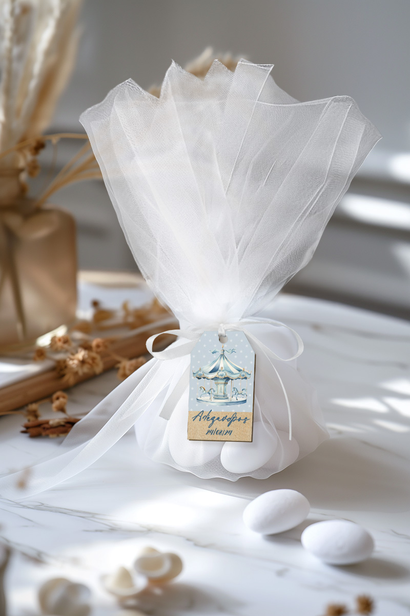 0.59€ – 1.49€Μοντέρνες & πρωτότυπες μπομπονιέρες βάπτισης με τούλι & κρεμαστό σχέδιο | Σετ εξωτερικό τούλι, Εσωτερικό τούλι, Κορδέλα σατέν & Κρεμαστό σχέδιο σε premium χαρτί, ξύλο ή plexiglass | Premium ποιότητα