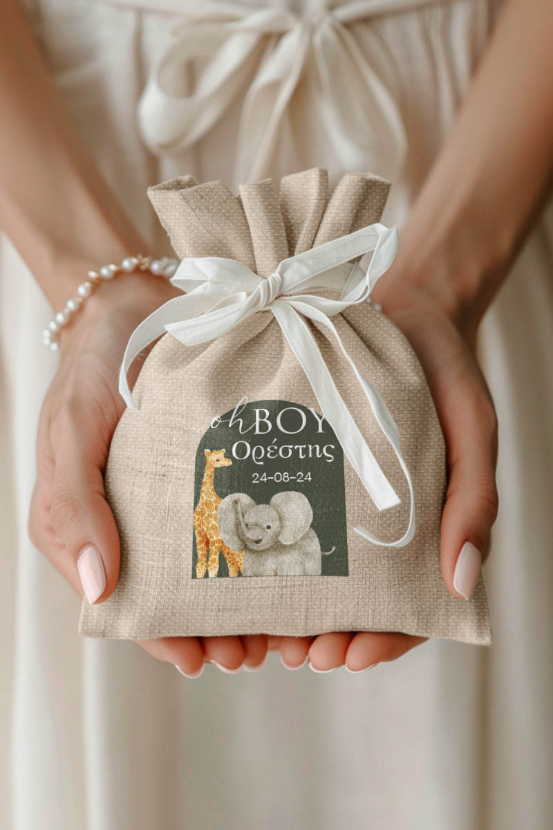 1.59€Μοντέρνες και Πρωτότυπες Μπομπονιέρες Βάπτισης με Πουγκί από Καμβά | Σετ Πουγκί, Εσωτερικό Τούλι & Κορδέλα Σατέν | Premium ποιότητα
