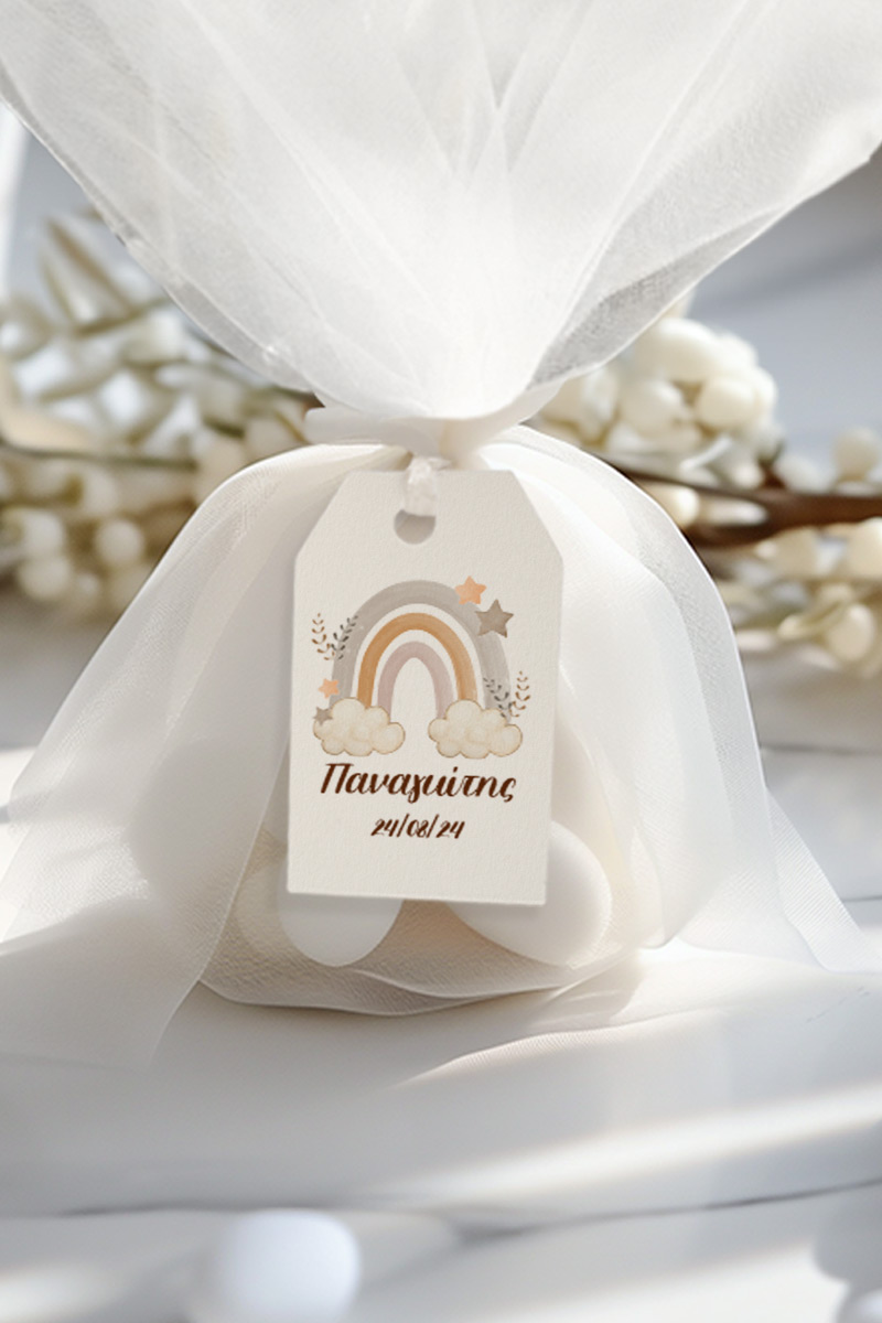 Μπομπονιέρες Βάπτισης με Τούλι & Σχέδιο Ουράνιο Τόξο με Αστεράκια