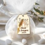 - 1 προσωποποιημένο κρεμαστό 7x4cm, από σκληρό premium χαρτί, ξύλο ή χρυσό καθρέφτη plexiglass