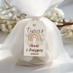 Μπομπονιέρες Βάπτισης με Τούλι & Σχέδιο Ουράνιο Τόξο για Δίδυμα