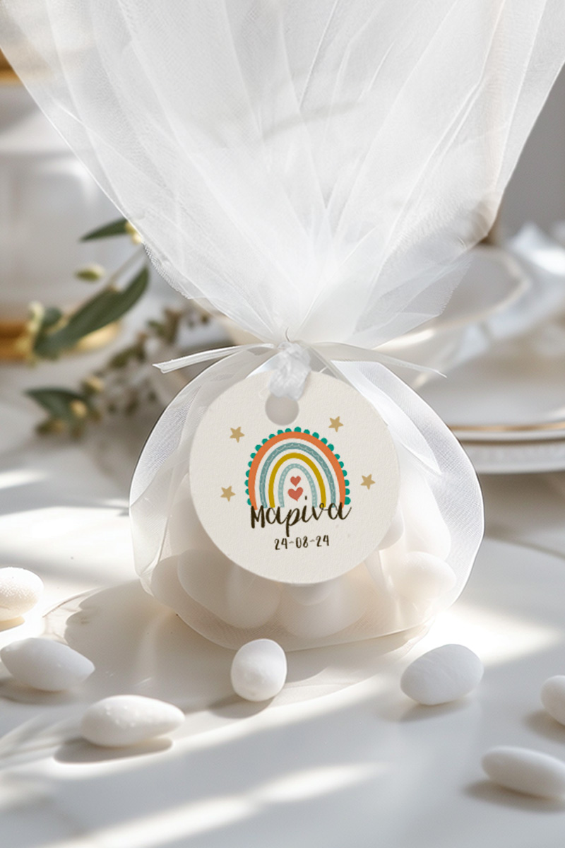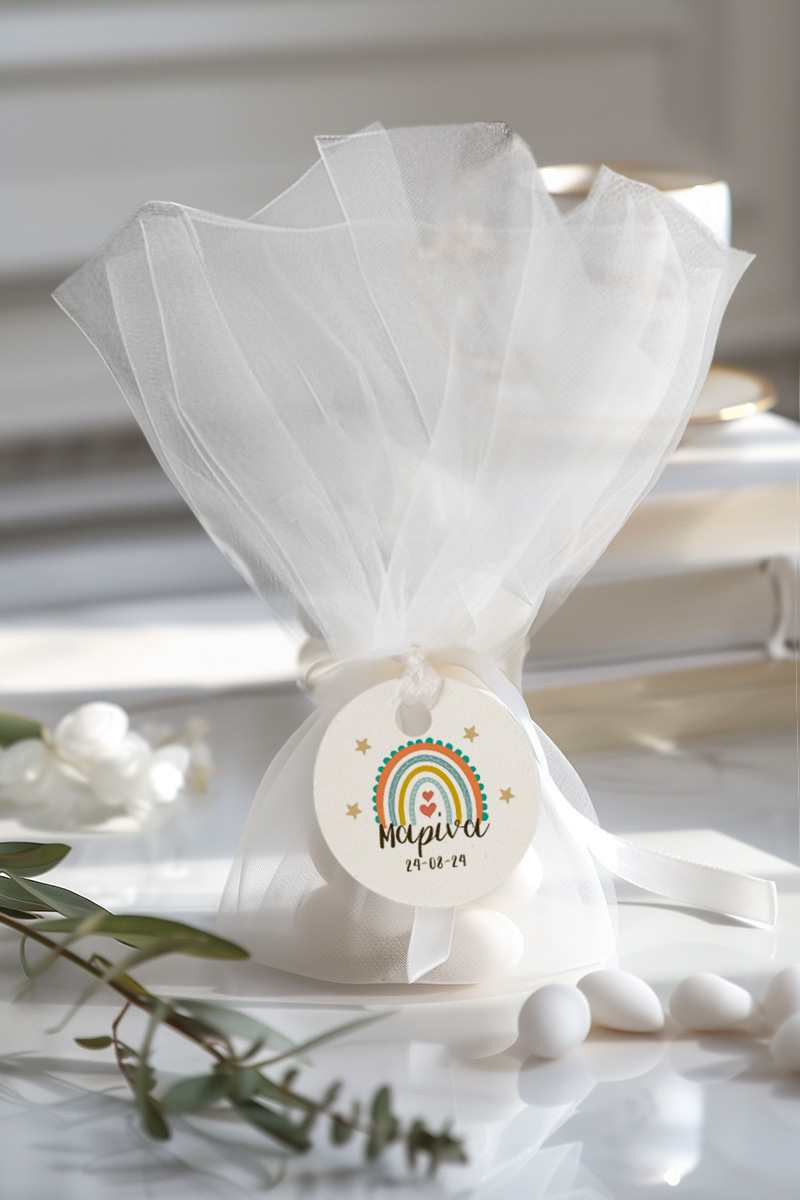 Μπομπονιέρες Βάπτισης με Τούλι & Σχέδιο Ουράνιο Τόξο με Καρδούλες