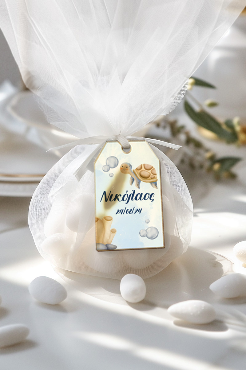 0.59€ – 1.49€Μοντέρνες & πρωτότυπες μπομπονιέρες βάπτισης με τούλι & κρεμαστό σχέδιο| Σετ εξωτερικό τούλι, Εσωτερικό τούλι, Κορδέλα σατέν & Κρεμαστό σχέδιο σε premium χαρτί, ξύλο ή plexiglass | Premium ποιότητα