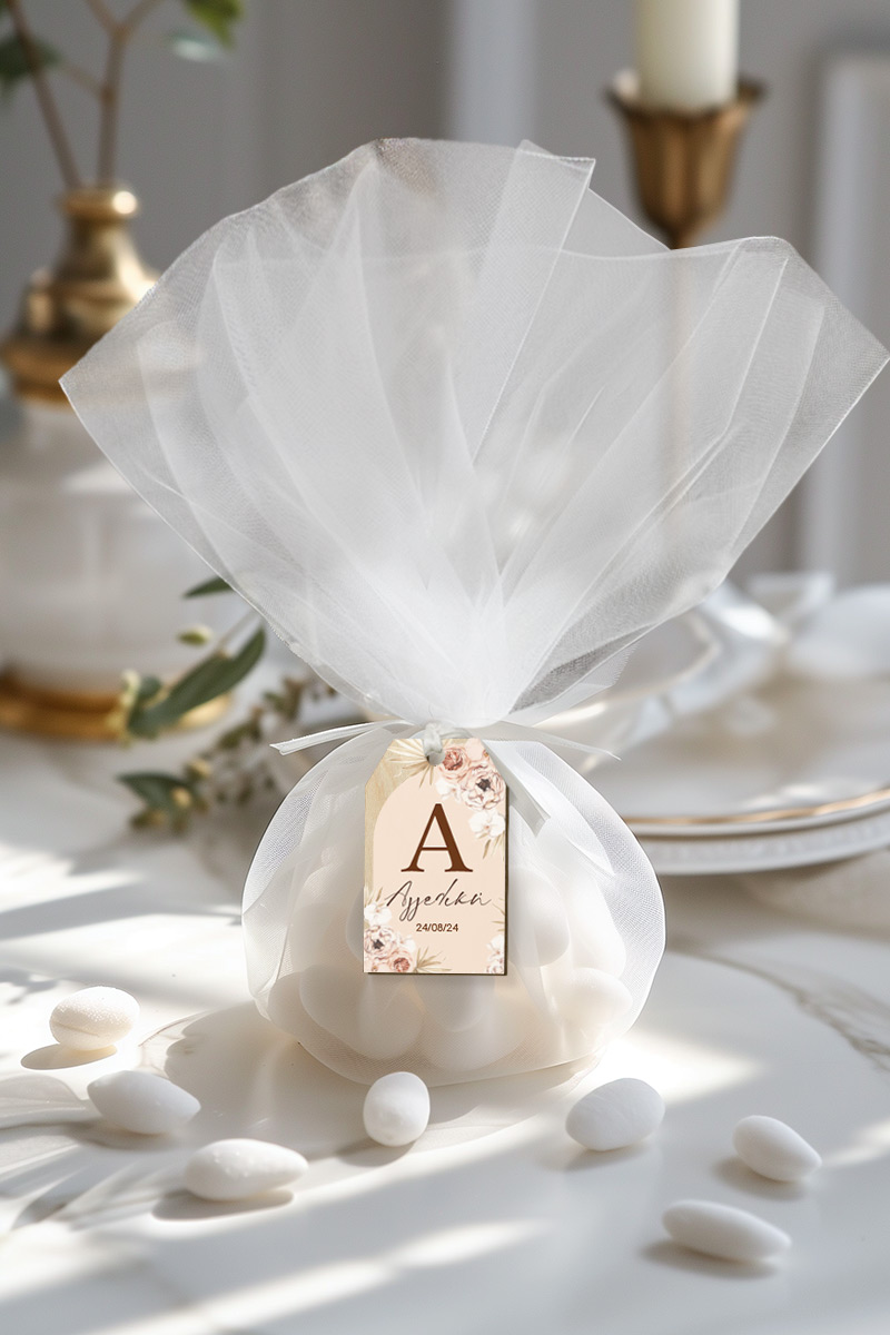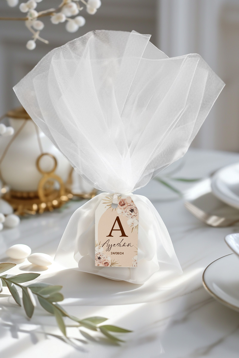 • 1 εσωτερικό τούλι (λιζιον) 25x25cm για γέμιση & τύλιγμα των κουφέτων