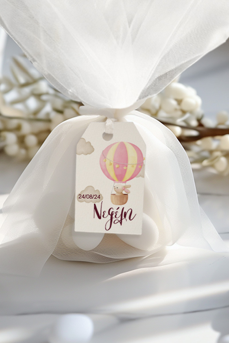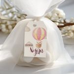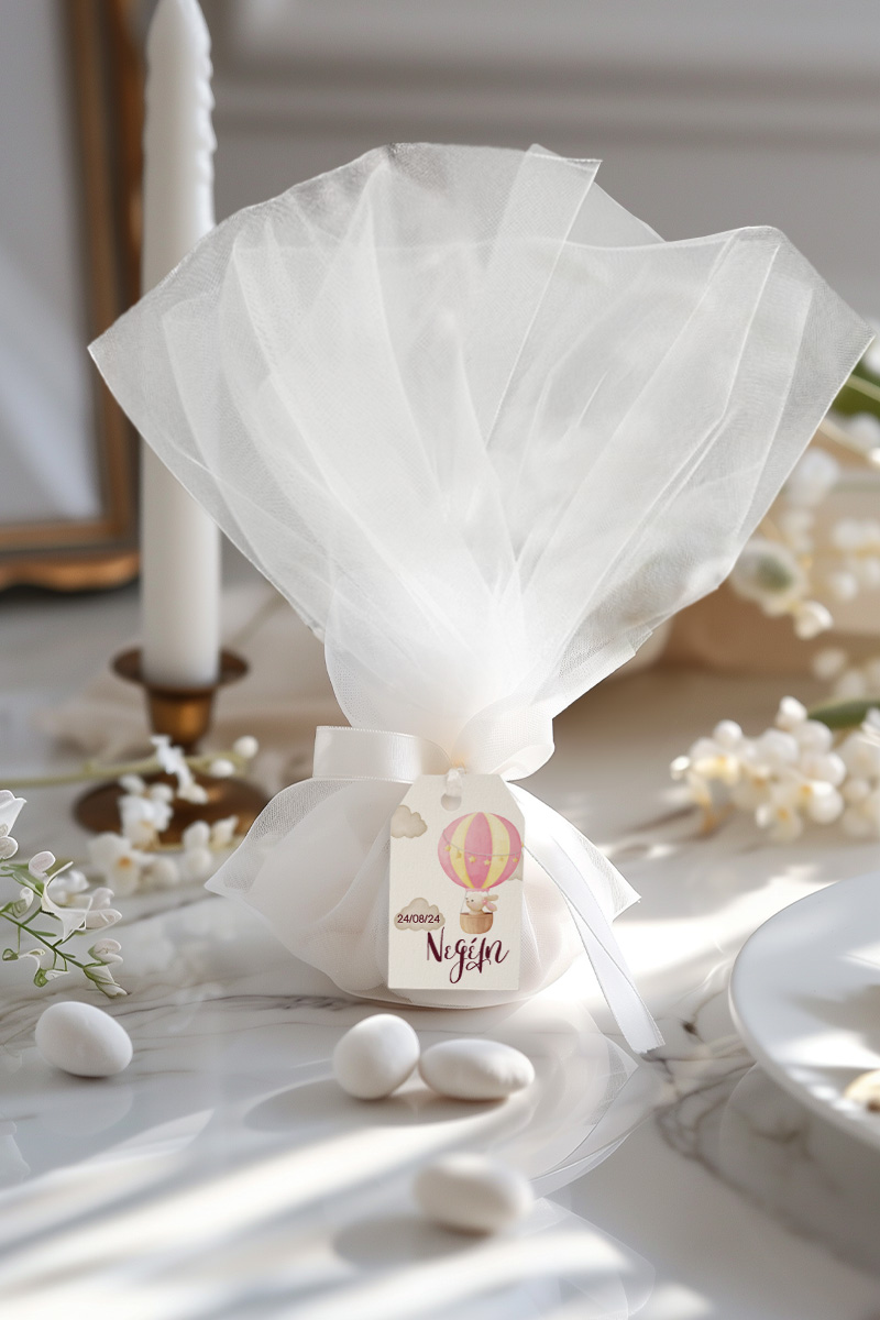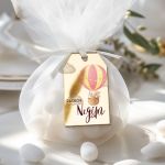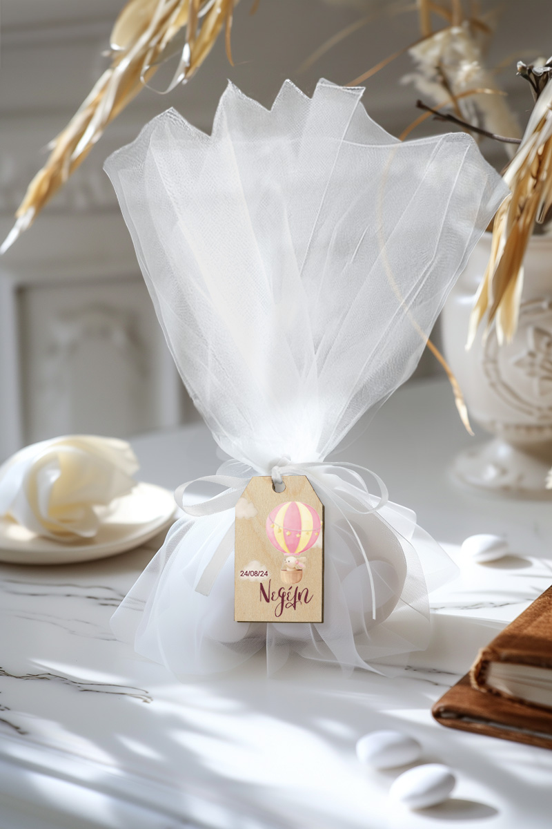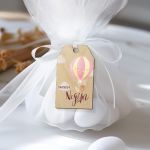 Μπομπονιέρες Βάπτισης με Τούλι & Σχέδιο Ροζ Χρυσό Αερόστατο