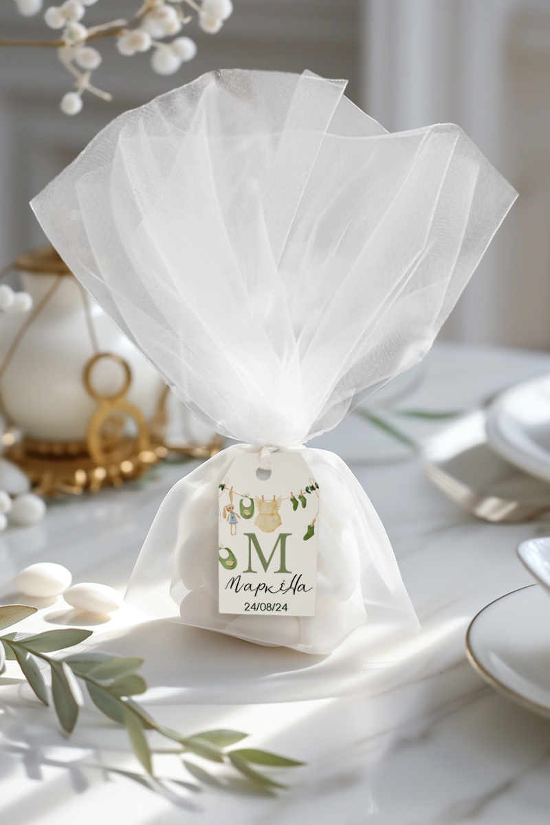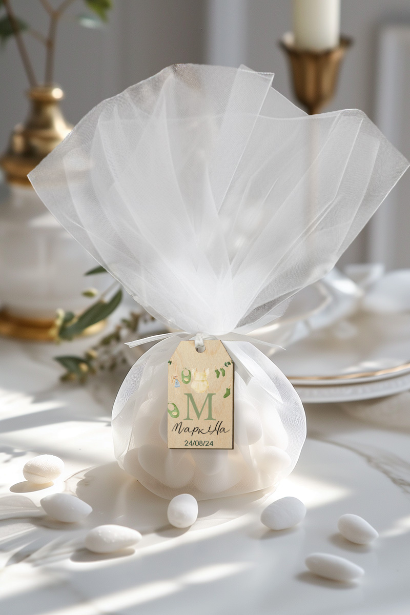 0.59€ – 1.49€Μοντέρνες & πρωτότυπες μπομπονιέρες βάπτισης με τούλι & κρεμαστό σχέδιο| Σετ εξωτερικό τούλι, Εσωτερικό τούλι, Κορδέλα σατέν & Κρεμαστό σχέδιο σε premium χαρτί, ξύλο ή plexiglass | Premium ποιότητα