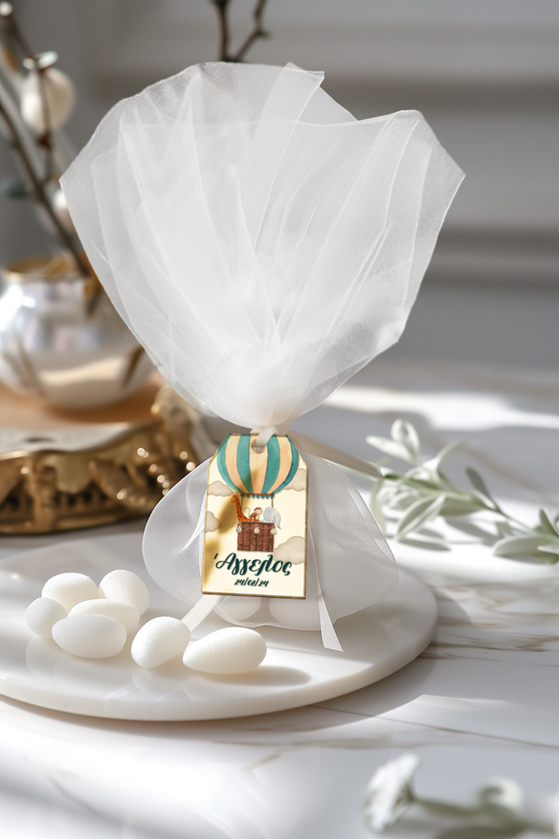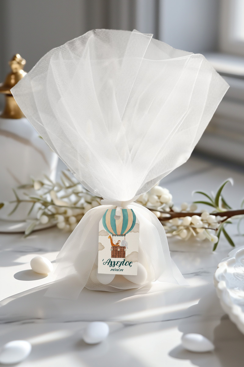 0.59€ – 1.49€Μοντέρνες & πρωτότυπες μπομπονιέρες βάπτισης με τούλι & κρεμαστό σχέδιο| Σετ εξωτερικό τούλι, Εσωτερικό τούλι, Κορδέλα σατέν & Κρεμαστό σχέδιο σε premium χαρτί, ξύλο ή plexiglass | Premium ποιότητα