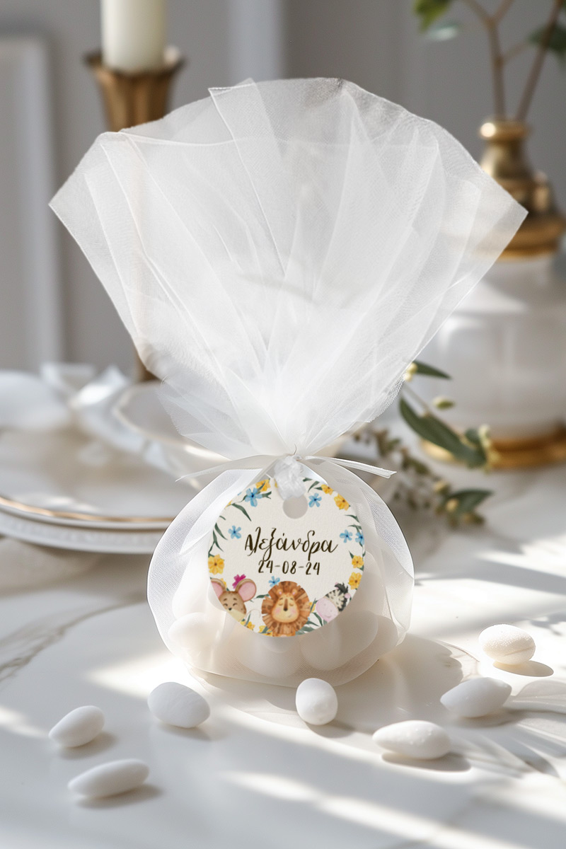 0.59€ – 1.49€Μοντέρνες & πρωτότυπες μπομπονιέρες βάπτισης με τούλι & κρεμαστό σχέδιο | Σετ εξωτερικό τούλι, Εσωτερικό τούλι, Κορδέλα σατέν & Κρεμαστό σχέδιο σε premium χαρτί, ξύλο ή plexiglass | Premium ποιότητα