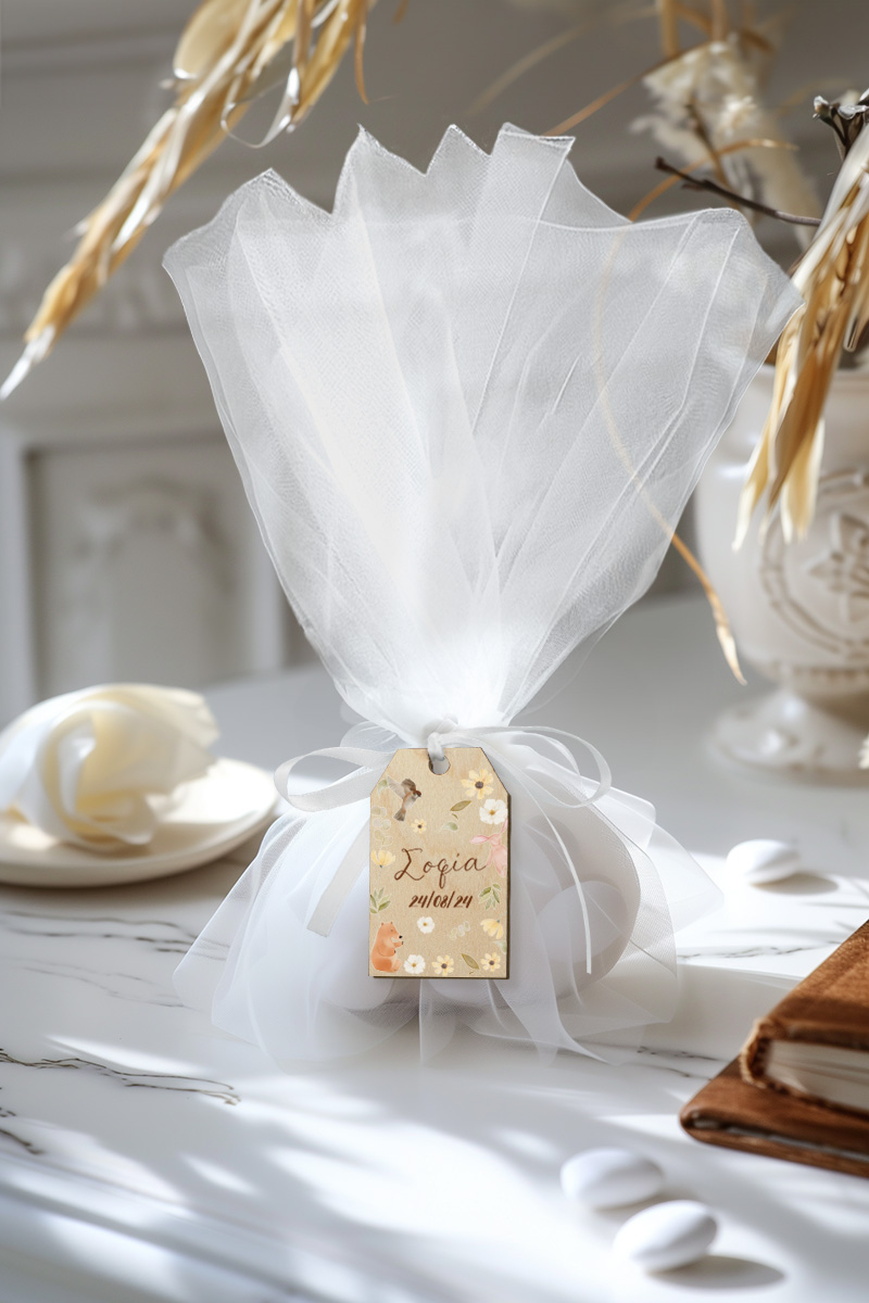 0.59€ – 1.49€Μοντέρνες & πρωτότυπες μπομπονιέρες βάπτισης με τούλι & κρεμαστό σχέδιο| Σετ εξωτερικό τούλι, Εσωτερικό τούλι, Κορδέλα σατέν & Κρεμαστό σχέδιο σε premium χαρτί, ξύλο ή plexiglass | Premium ποιότητα