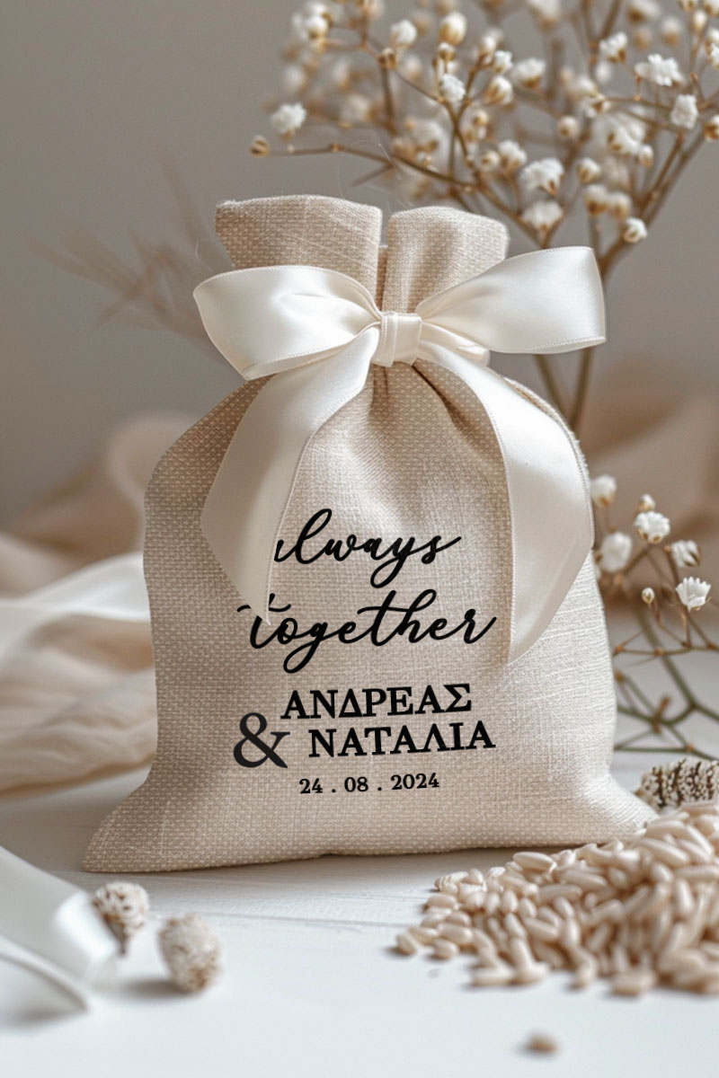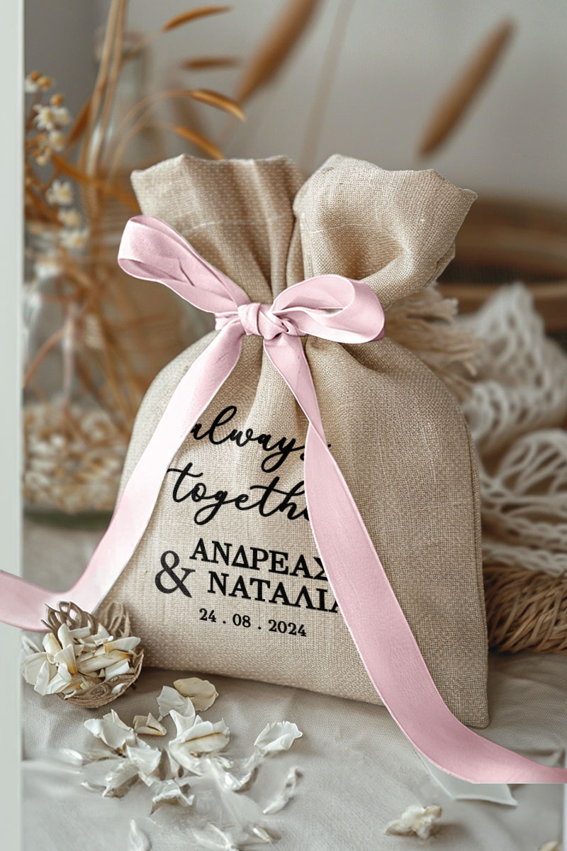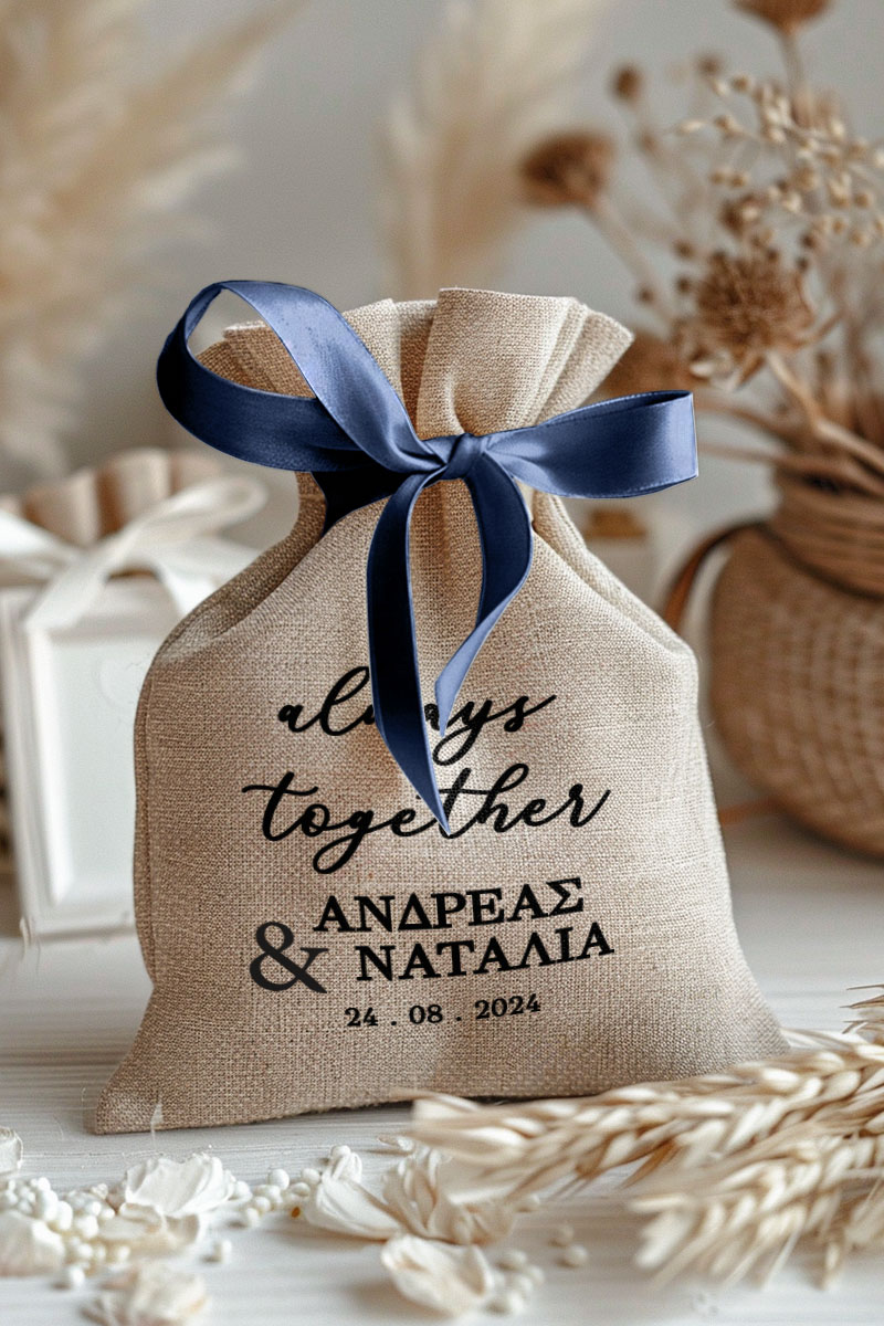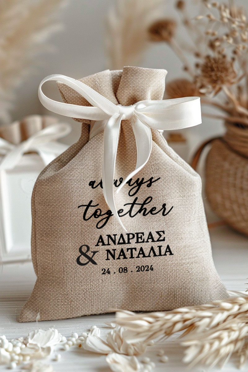 1.59€Μοντέρνες και Πρωτότυπες Μπομπονιέρες Γάμου με Πουγκί από Καμβά | Σετ Πουγκί, Εσωτερικό Τούλι & Κορδέλα Σατέν | Premium ποιότητα